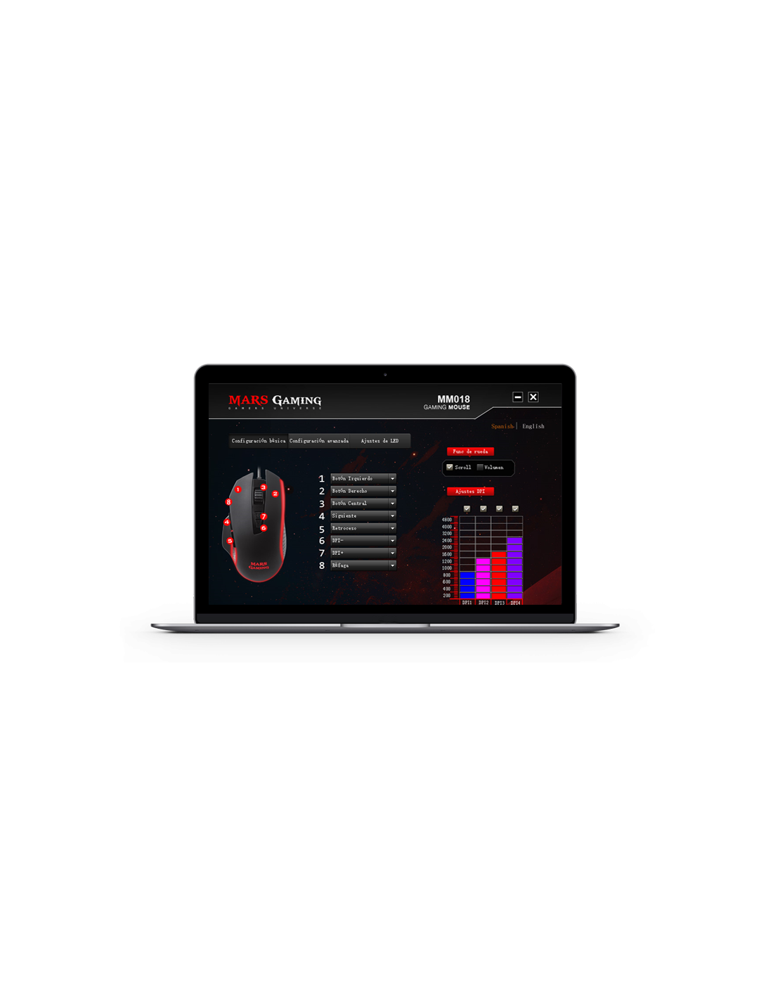 MM018 هو فأرة الألعاب الطيفية RGB الدقيقة والمريحة، مع قبضة ثابتة و8 أزرار قابلة للبرمجة لحرية العمل الكاملة، بما في ذلك زر جانبي إضافي للوصول السريع في أي وقت. انزلق بسرعة، احصل على أفضل دقة، واستمتع بجمالية الألعاب التي لا تضاهى. كل شيء في واحد!