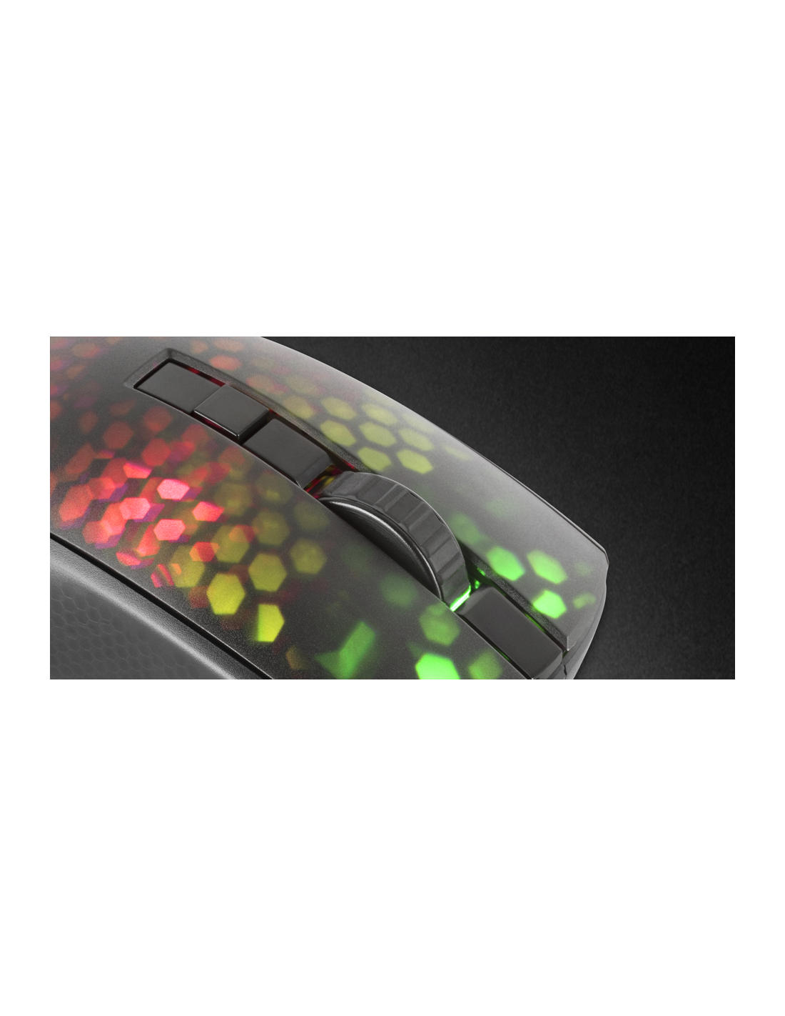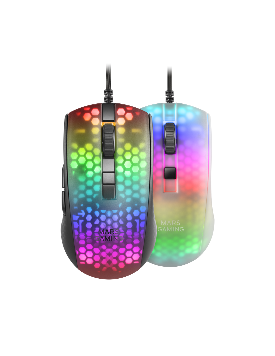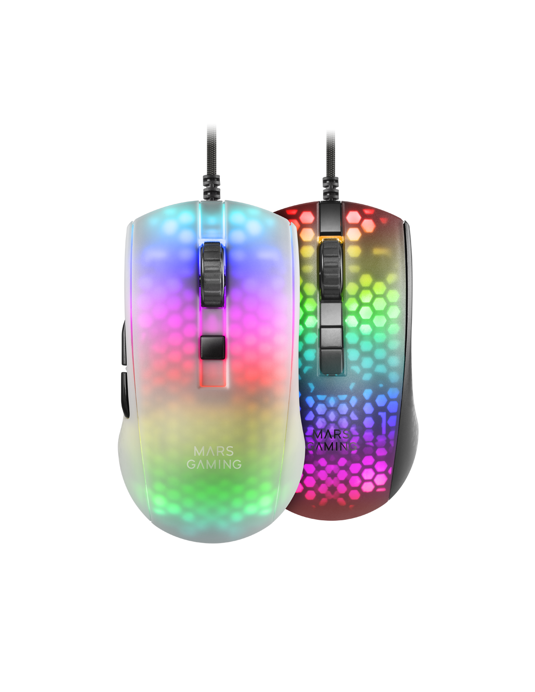 بالنسبة لعشاق الخفة الفائقة بوزن 58 جرام فقط، ولكن بدون ثقوب في بنيتها ومع تأثير إضاءة RGB شفاف مدهش. دون التخلي عن أفضل الخصائص مع بصريات متقدمة تصل إلى 12800DPI، كابل خفيف الوزن Paracord، مفاتيح ميكانيكية Huano وبرنامج تحكم قوي.