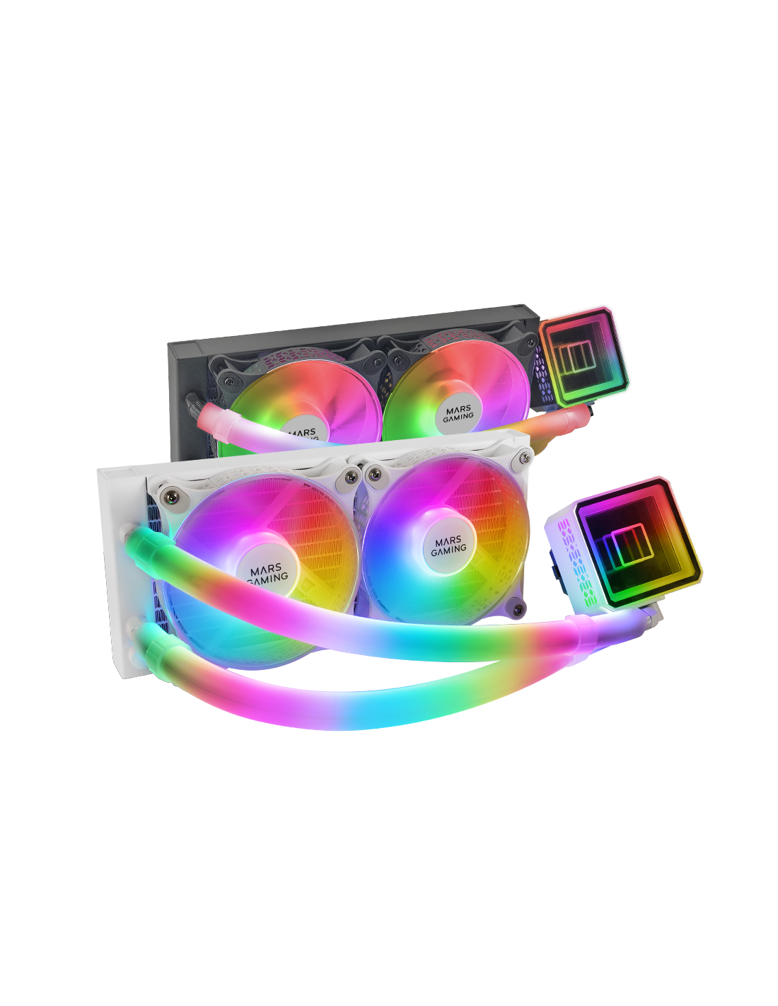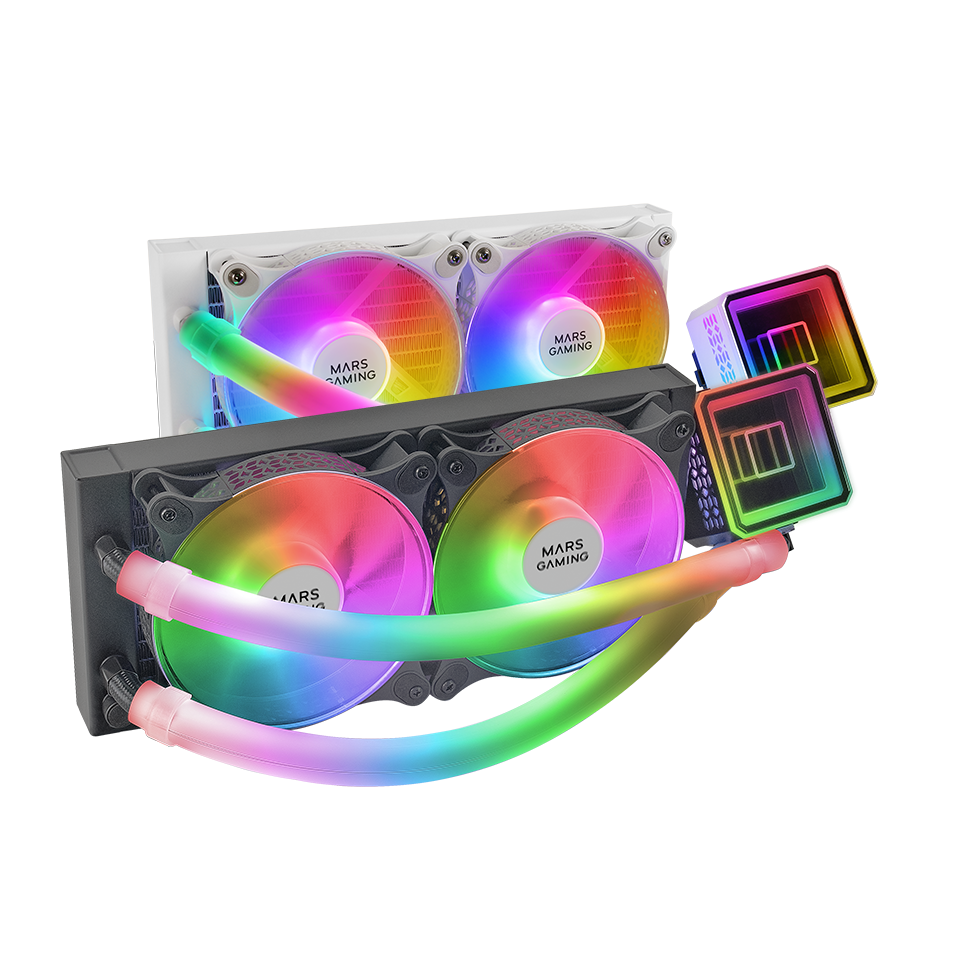 التبريد السائل الأكثر روعة وقوة. مرآة لانهائية، أنابيب ومراوح ARGB 360º وأداء استثنائي في أنظمة التبريد السائل بقوة غير عادية تصل إلى 500 واط مكافئة لأنظمة 360 مم. مضخة OPTI-CHAMBER الجديدة من الجيل الثالث، 2x مراوح صامتة FDB ARGB، مشتت حراري ذو مقاومة منخفضة وتوافق عالمي