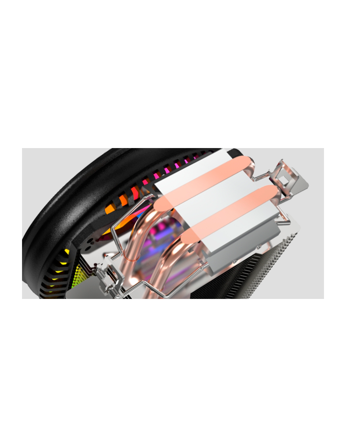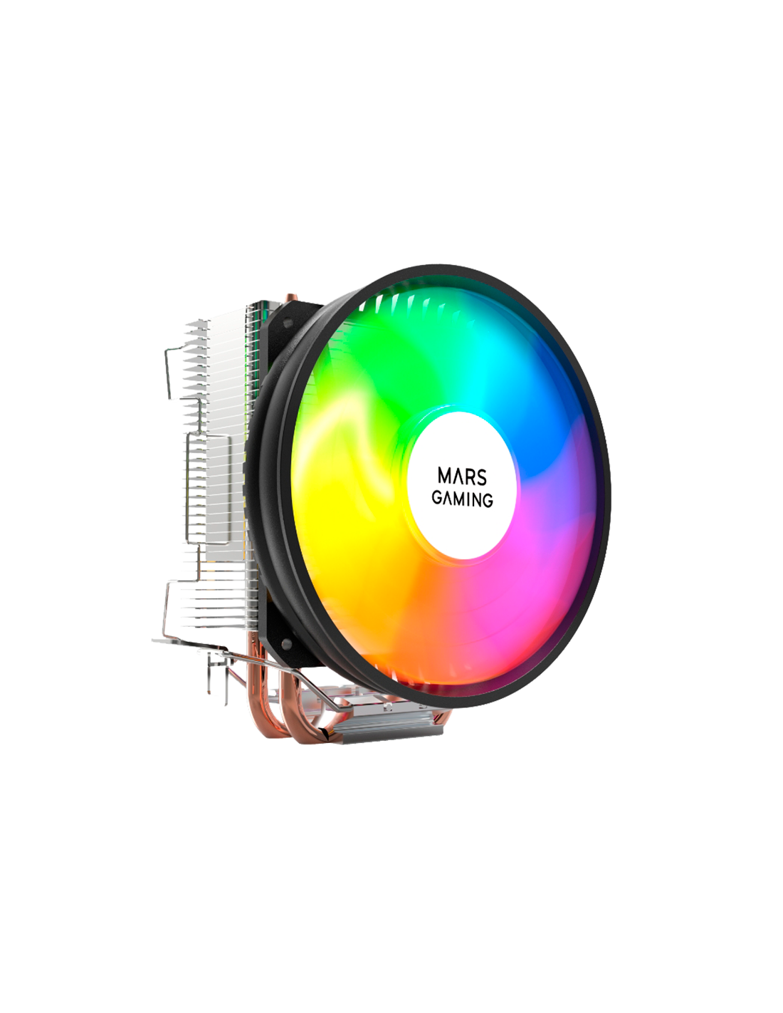 إضاءة CHROMA RGB تلقائية مع أداء كبير في تبريد الوحدات المركزية للحواسيب بواسطة الهواء حتى 130W TDP بفضل الأنابيب الحرارية HCT الثنائية. التوافق العالمي.