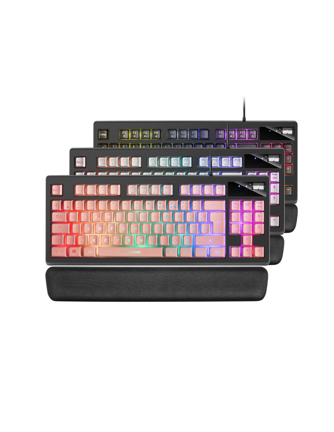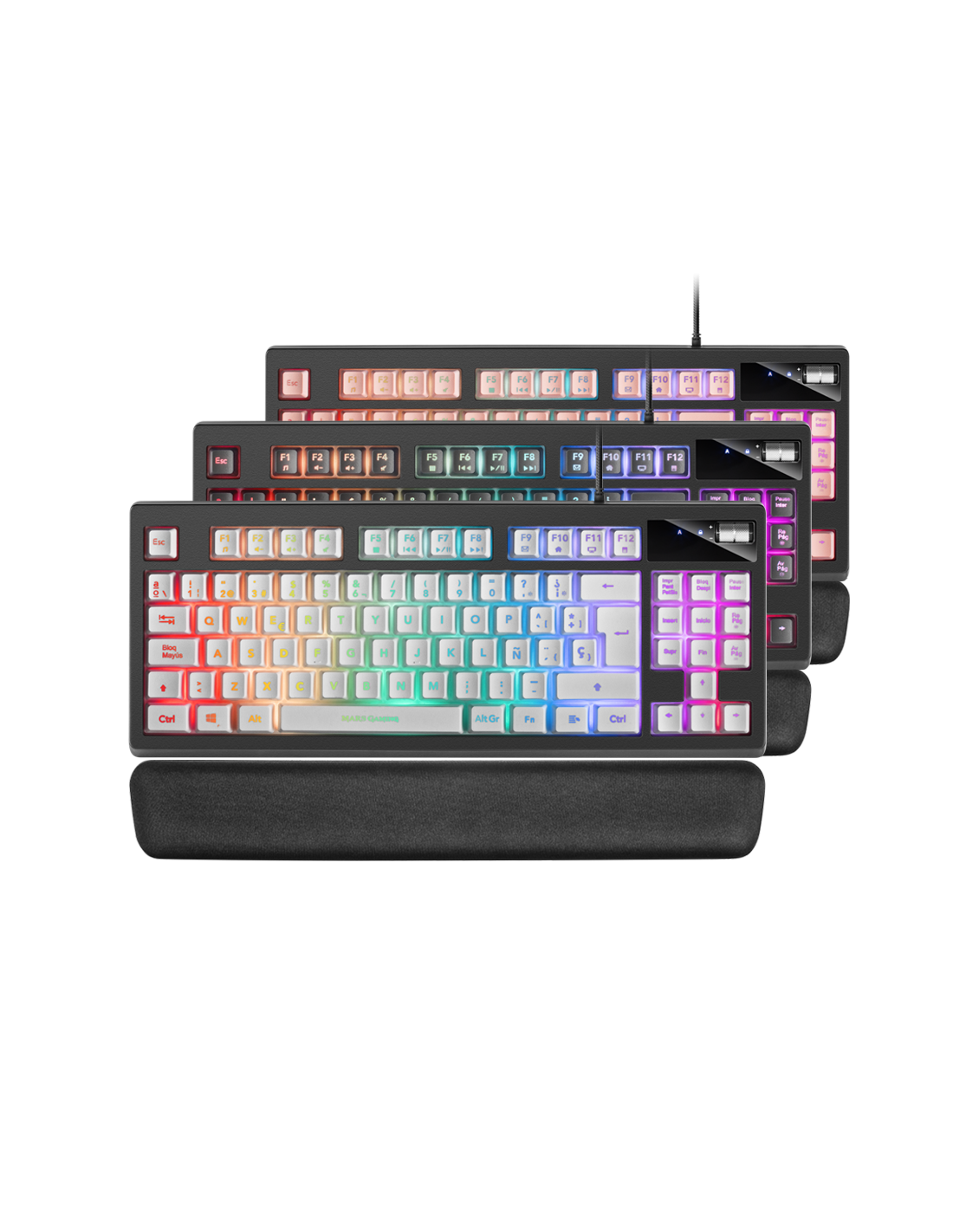 بنقرة سريعة ومريحة، تصميم RGB مع تأثيرات متعددة وزر Roller للتحكم في الصوت أثناء اللعب، يعتبر MKAX هو اللوحة المفاتيح النهائية للأعبين الذين يبحثون عن أفضل جماليات الألعاب مع أداء دقيق لأي نوع من التحديات. ميزات عالية النهاية، تنسيق TKL وراحة اليد الممتازة... أفضل الميزات، في 3 ألوان مختلفة.