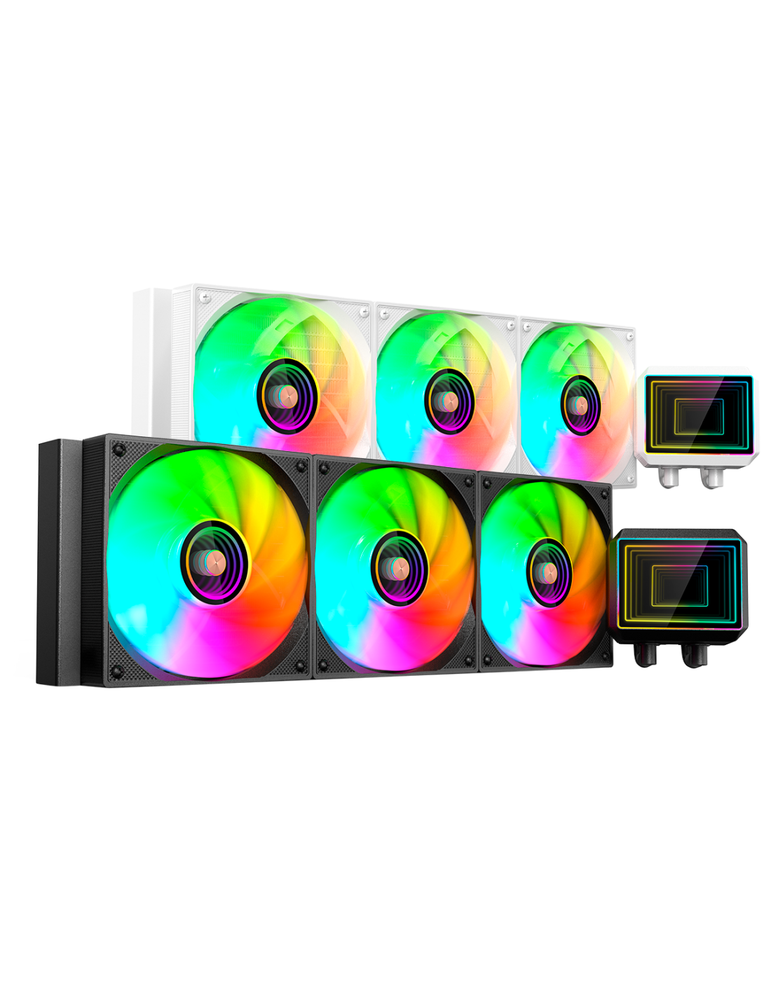 Die ML-TWO360 ist eine AIO-Flüssigkeitskühlungslösung, die Premium-ARGB-Design, modernste thermische Leistung und extrem leisen Betrieb kombiniert. Mit einer vierten Generation Pumpe mit Kupferbasis und Mikrokanälen, drei Kupferkern-ARGB-Lüftern, modernsten FDB-Lagern und Infinity-Spiegeleffekten sowohl im Kern als auch in den Lüftern, maximiert dieses Kühlsystem nicht nur die Wärmeableitung, sondern verwandelt auch die Ästhetik Ihrer Konfiguration. Kompatibel mit ARGB-Motherboards und CPUs mit bis zu 600W TDP, maximiert es Ihre Konfiguration