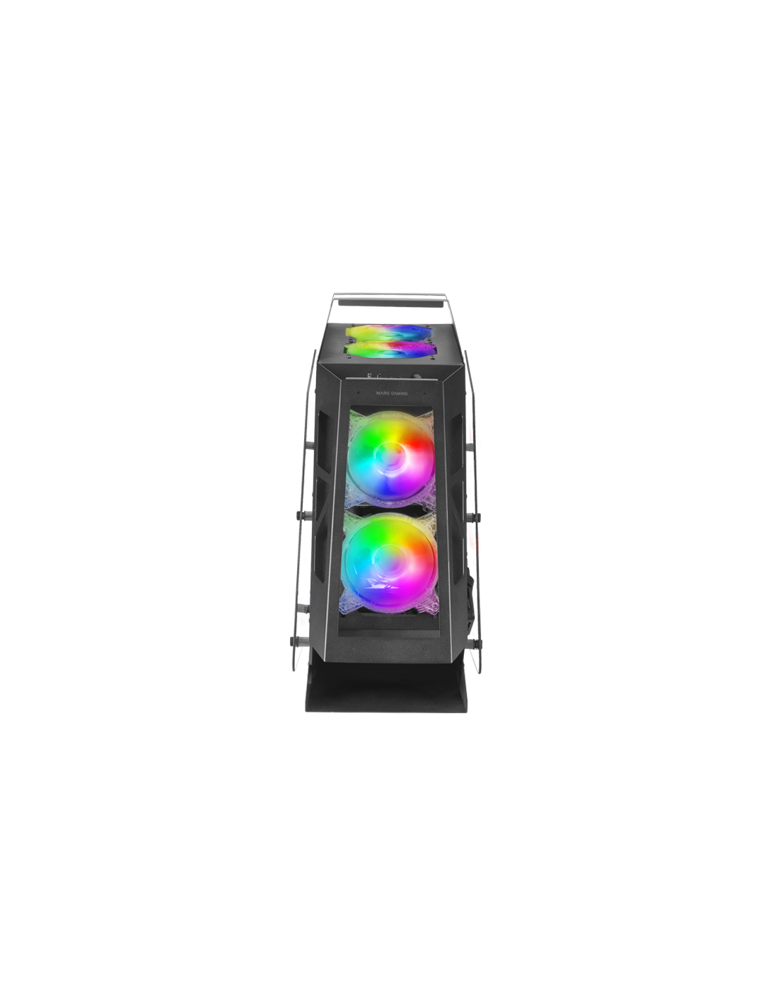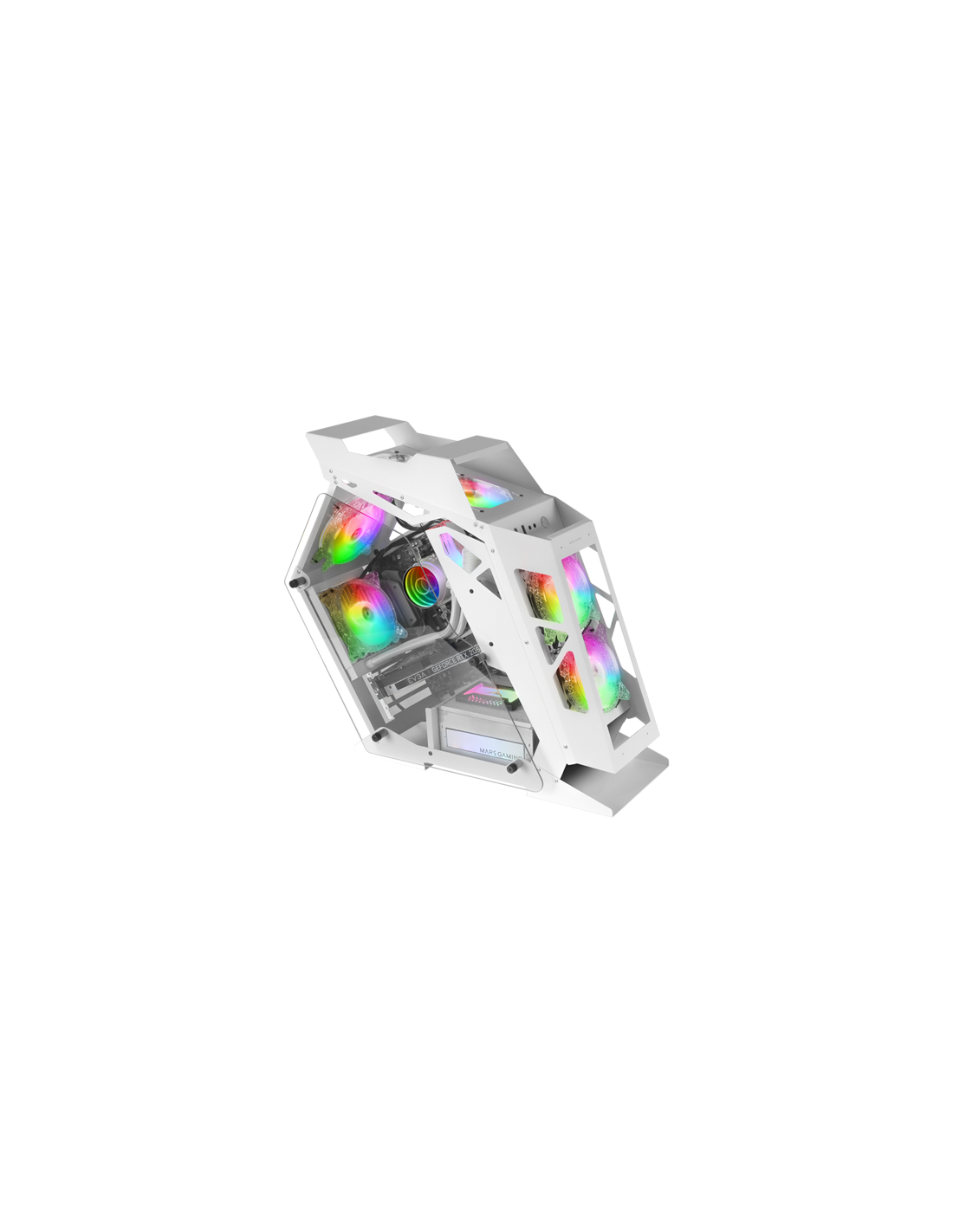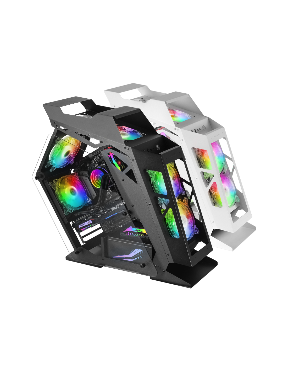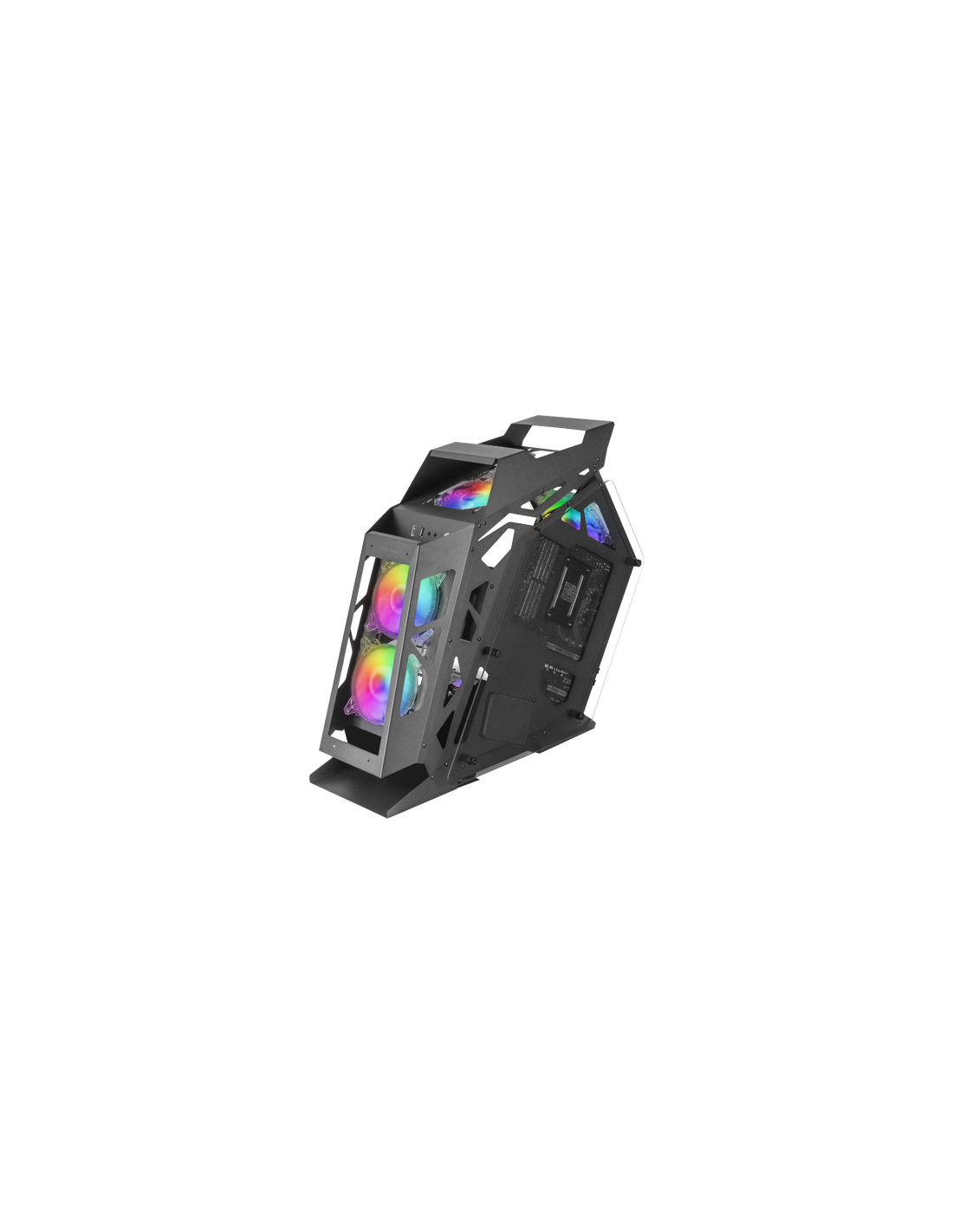 Spektakuläres futuristisches Design und extreme Kühlung in kompakter Größe für Systeme zu Micro-ATX. Enthält einen Argb-Controller mit der Steuerung mit Fernbedienung oder Motherboard und 4 spektakulären 120-mm-Chroma-RGB-Fans.