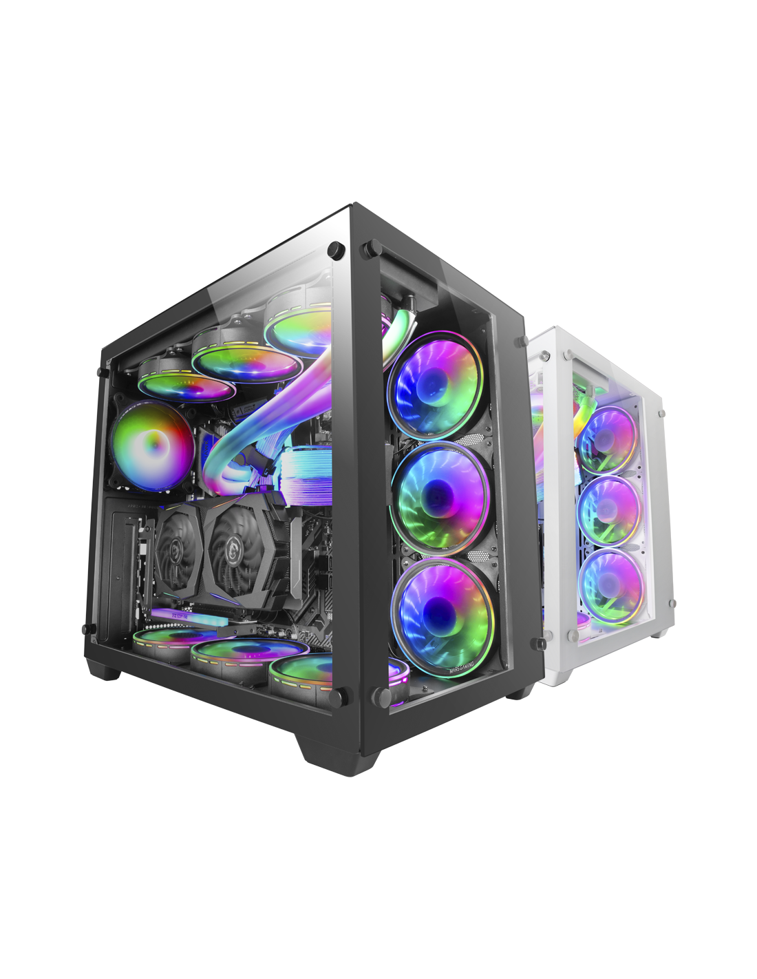Größe XXL E-ATX Für die leistungsstärksten und exklusiven Konfigurationen, die Sie in Ihrem doppelten Fenster von gehärtetem Glas während Ihres doppelten Fensters anzeigen können. MCV3, auf das Sie auf die fortgeschrittensten PCs und den innovativsten kundenspezifischsten Projekten gehören, ist die Box, auf die Sie gewartet haben.
