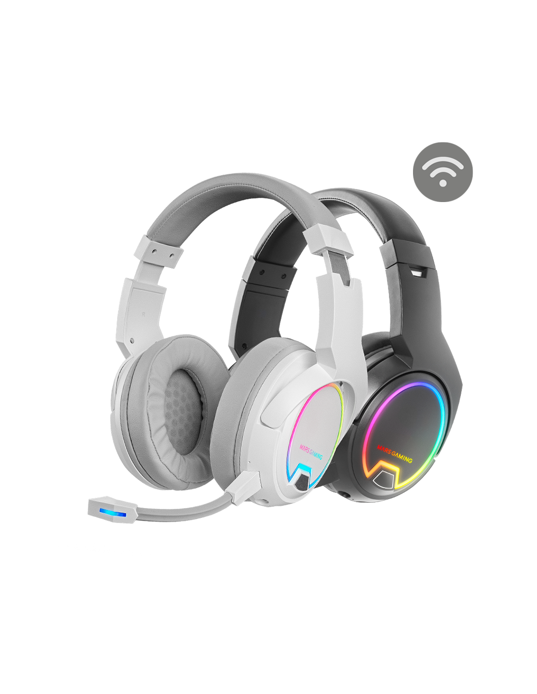 Kabellose Kopfhörer mit ARGB-Flow-Beleuchtung, bis zu 40 Stunden Akkulaufzeit, abnehmbarem Mikrofon mit digitaler Geräuschunterdrückung ENC, VOICE MONITOR-Funktion und universeller Kompatibilität.