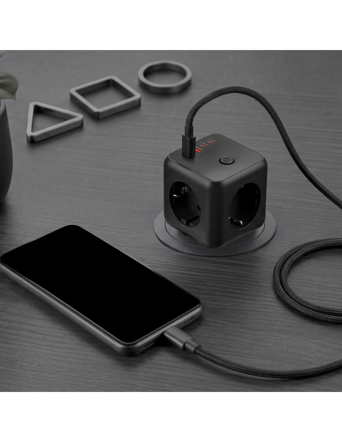 - 2x USB-A + 2x USB-C + 3x SCHUKO Typ F