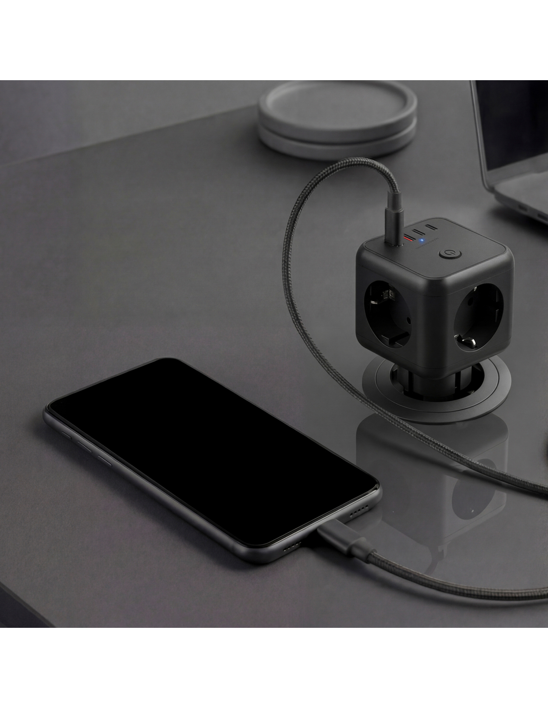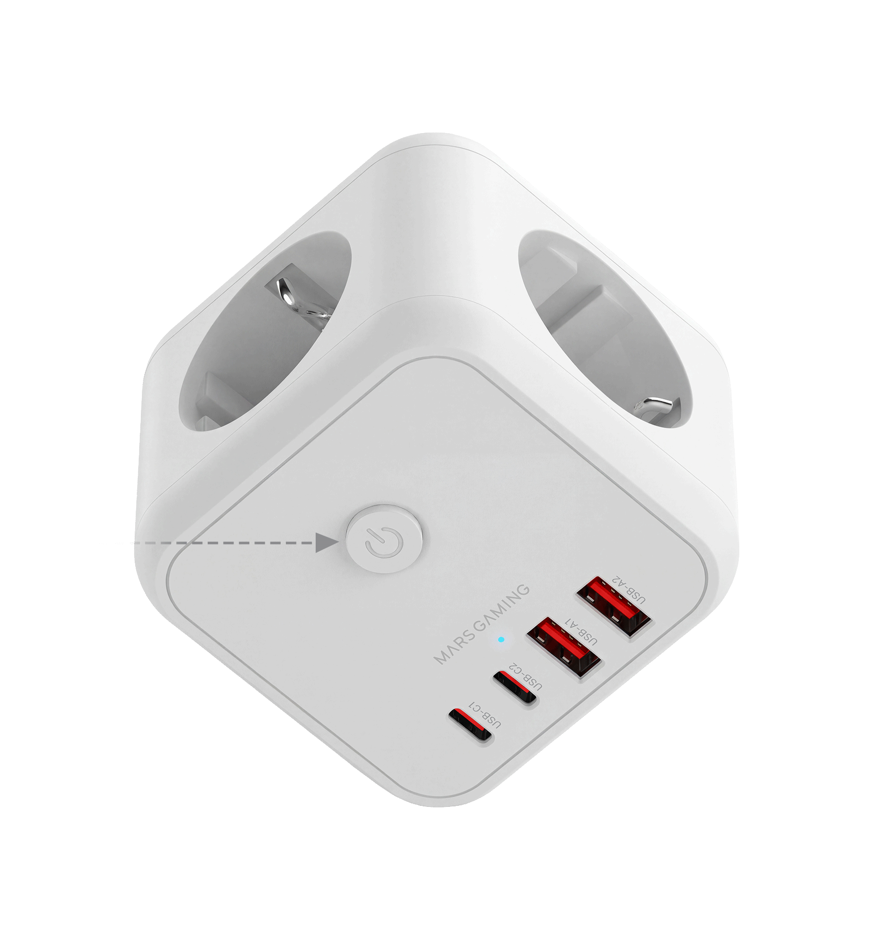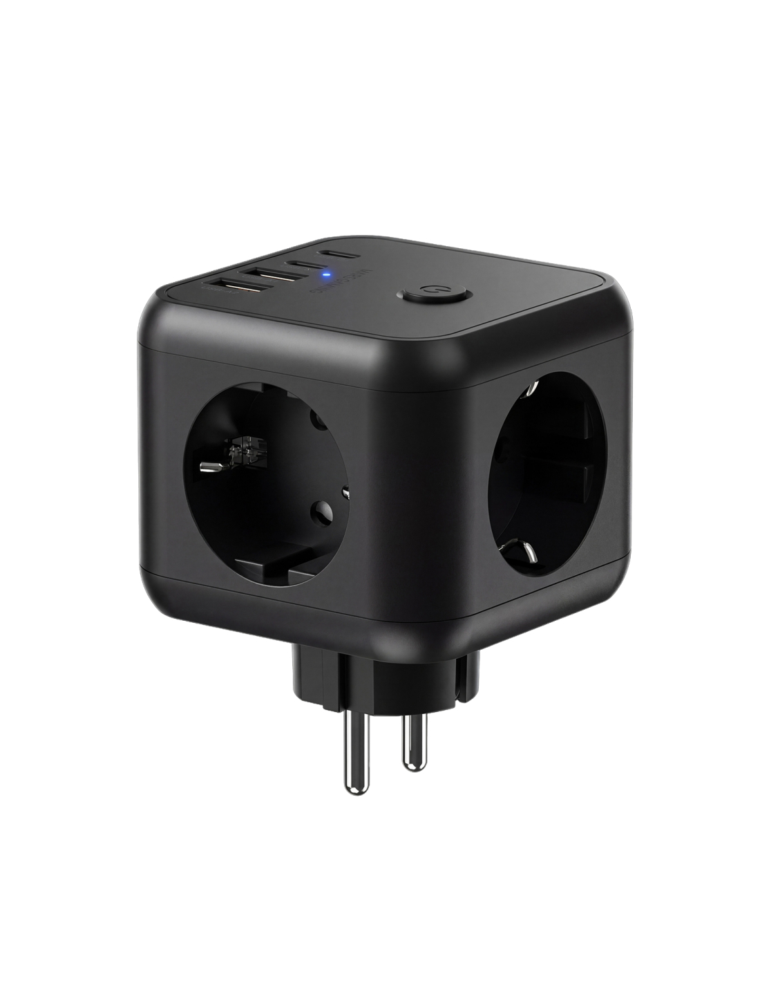 Der MD-CUBE20 ist ein kompakter Multifunktions-Powercube, der alle Ihre Anschlüsse in einem einzigen Gerät vereint. Mit 3 SCHUKO-Steckdosen, 2 USB-C- und 2 USB-A-Anschlüssen können Sie mehrere Geräte gleichzeitig auf eine saubere und effiziente Weise mit Strom versorgen und aufladen. Darüber hinaus verfügt er über eine EIN/AUS-Taste mit LED-Anzeige, mit der sich sowohl die Stecker als auch die USB-Anschlüsse einfach ein- und ausschalten lassen.