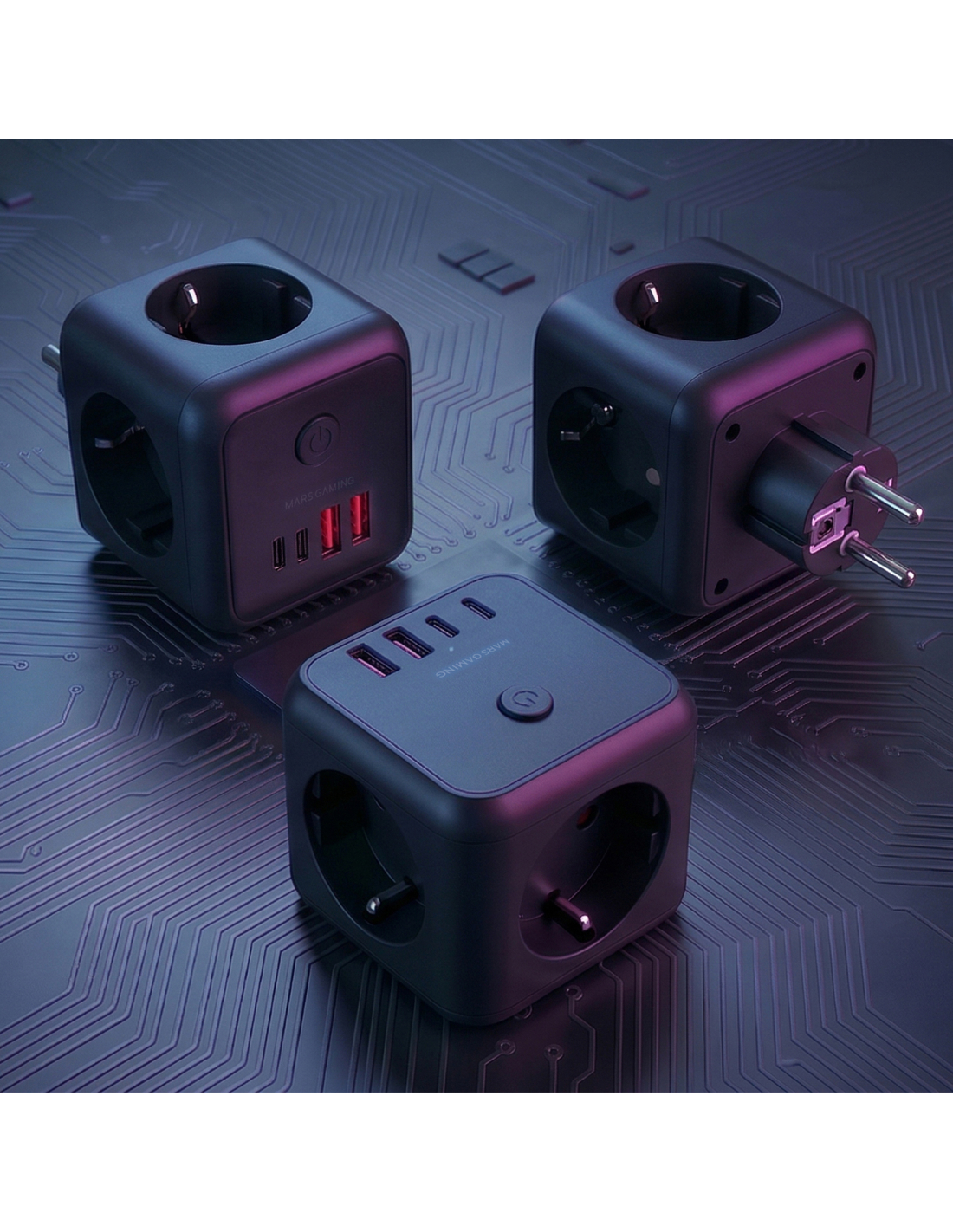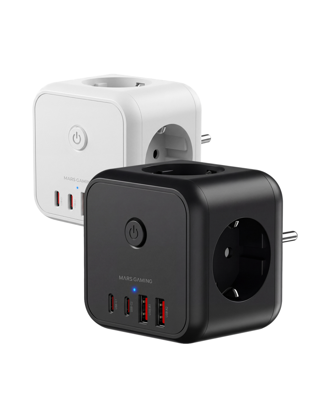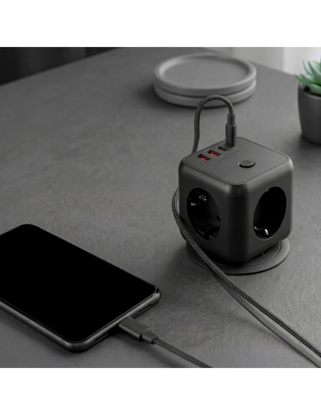 Der MD-CUBE20 ist ein kompakter Multifunktions-Powercube, der alle Ihre Anschlüsse in einem einzigen Gerät vereint. Mit 3 SCHUKO-Steckdosen, 2 USB-C- und 2 USB-A-Anschlüssen können Sie mehrere Geräte gleichzeitig auf eine saubere und effiziente Weise mit Strom versorgen und aufladen. Darüber hinaus verfügt er über eine EIN/AUS-Taste mit LED-Anzeige, mit der sich sowohl die Stecker als auch die USB-Anschlüsse einfach ein- und ausschalten lassen.