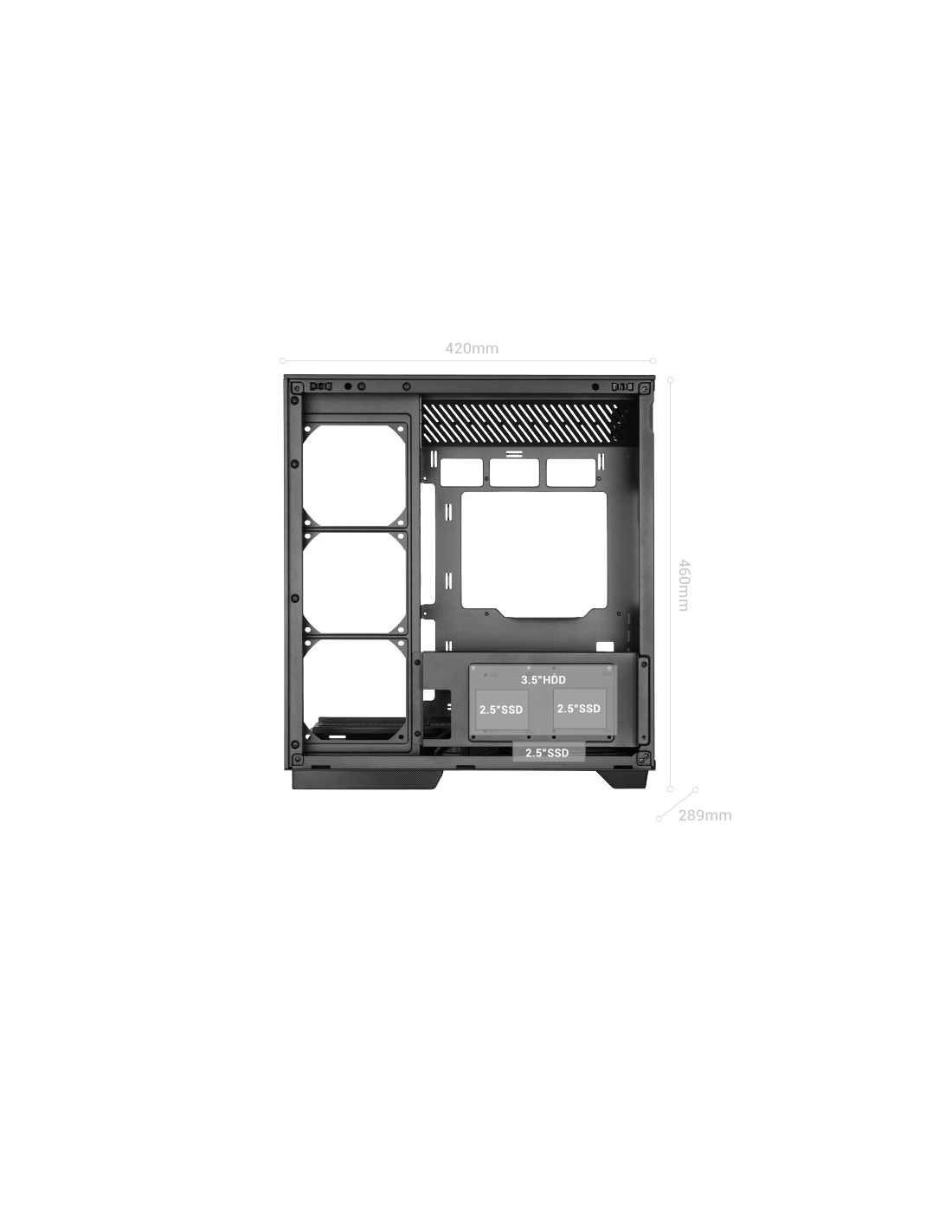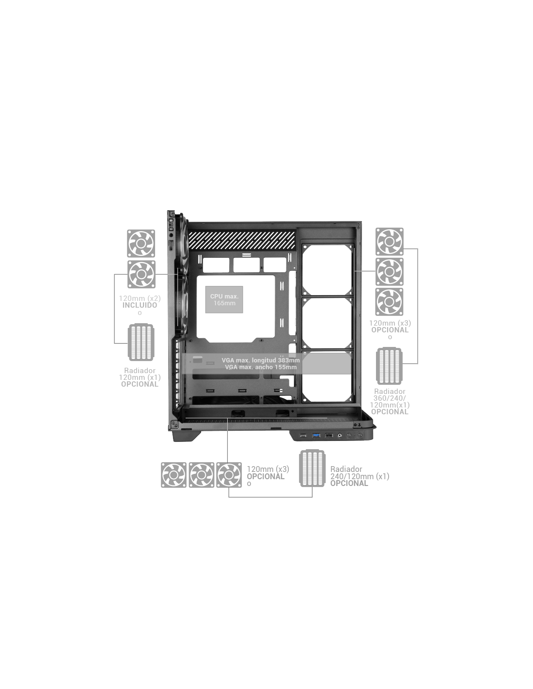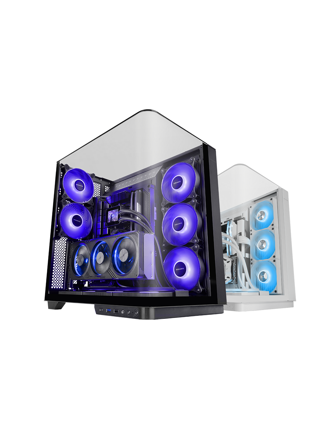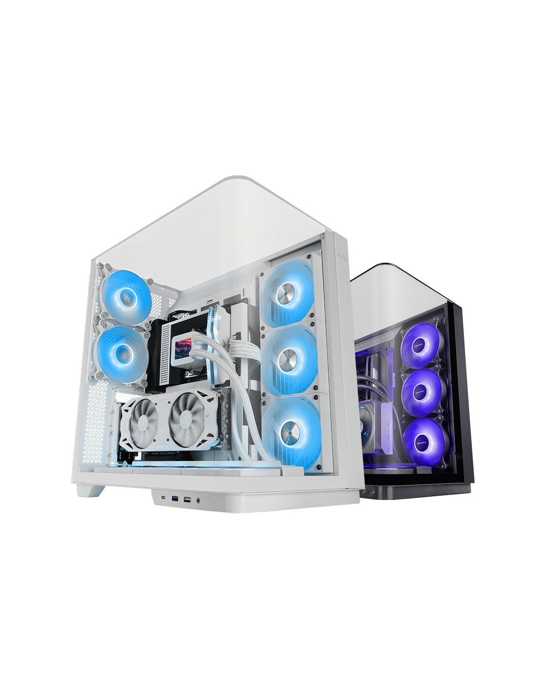 Der MC-Infinio-Turm trägt das Spielendesign mit seiner Hüllstruktur und Panoramablick ohne Unterbrechungen auf ein anderes Niveau. Sein exklusives horizontal gekrümmtes gemäßigte Glas, das zusammen mit einem Glasoberteil in einem Stück von vorne zur Seite verbreitet ist, erzeugt einen Fluid- und Nichtrahmen-Effekt, der jede Komponente und LED-Beleuchtung verbessert. Ausgestattet mit 2 vorinstallierten hinteren Argb-Lüfter, die Unterstützung für bis zu 8 Lüfter und eine flüssige Kühlung von bis zu 360 mm, garantiert eine thermische Dissipation. Ihr vertikales Installationssystem für GPU, Kompatibilität mit Grafikkarten von bis zu 383 mm, vielseitigen Lagerschächten und fortschrittlicher Konnektivität mit USB-C Erstellen Sie es zu einem perfekten Leistung, Anpassung und ästhetischer Option.