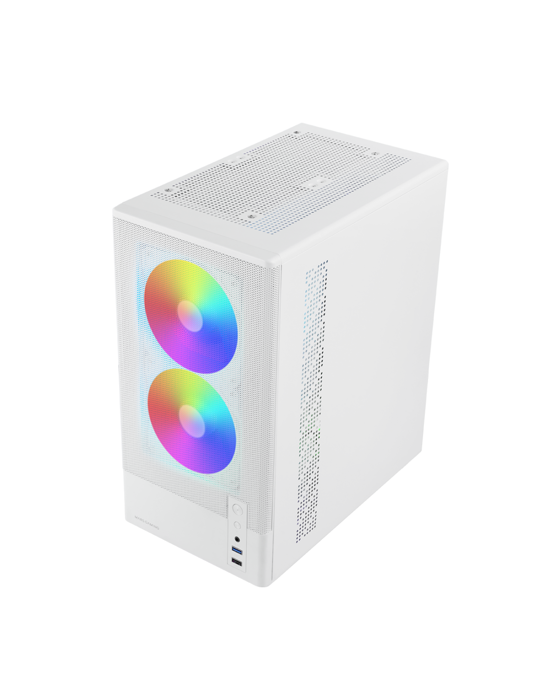 Das MC ONYX ist ein hochleistungsfähiges microATX-Gehäuse, das einen extremen Luftstrom in einem kompakten Formfaktor bietet. Seine Metallmesh-Front maximiert die Luftzirkulation, während das Seitenfenster aus gehärtetem Glas Ihre Hardware deutlich sichtbar macht. Es enthält 3 ARGB 120mm-Lüfter mit FDB-Lagern (2 vorne + 1 hinten) und Unterstützung für bis zu 240mm-Flüssigkeitskühlung auf der Oberseite sowie Platz für bis zu 7 120mm-Lüfter. All dies mit separater unterer Netzteilkammer, bis zu 292mm GPU- und bis zu 165mm CPU-Kühlern.