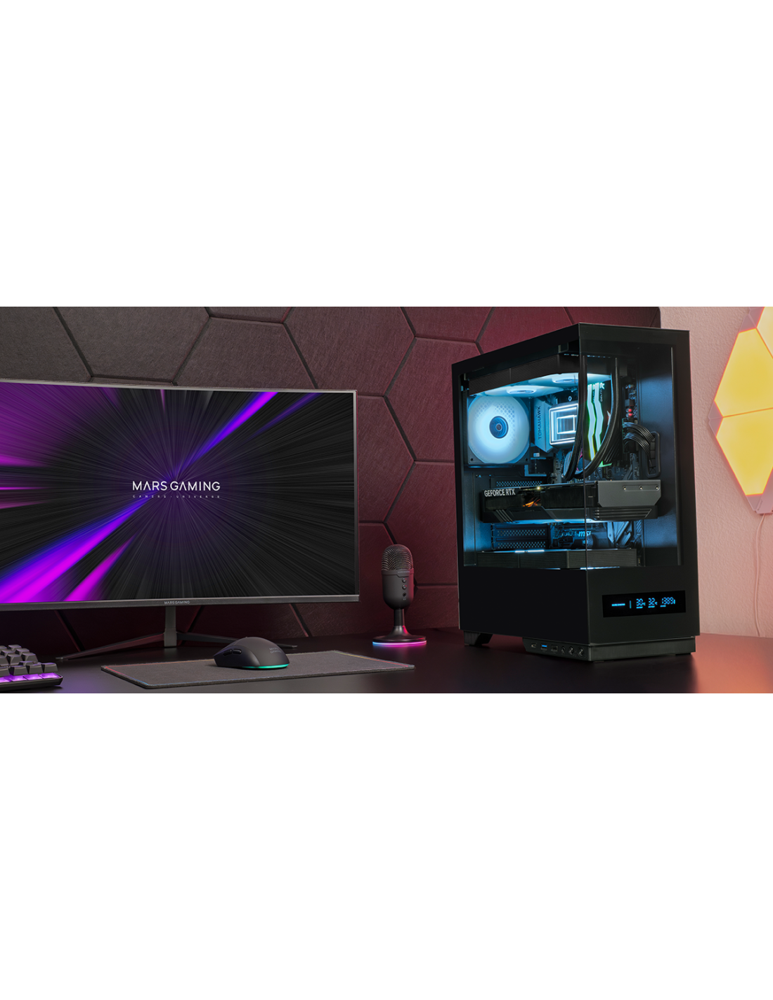 Der MC PULSAR kombiniert einen Panoramablick auf gehärtetem Glas mit Echtzeit-Kontrolle dank seines rechteckigen Front-LCD-Displays. Sein optimiertes Gehäuse mit dem einzigartigen Cablehatch-System, einem werkzeuglosen, schnell zugänglichen seitlichen Kabelschacht, vereinfacht die Montage und Wartung, während USB C + USB 3.0 + USB 2.0 + Audio-Konnektivität Sie auf dem Laufenden hält. Luft- oder flüssigkeitsgekühlt und ATX-/MicroATX-/Mini-ITX-kompatibel, ist es die perfekte Basis für ein leistungsstarkes, sauberes und ganz persönliches Setup.