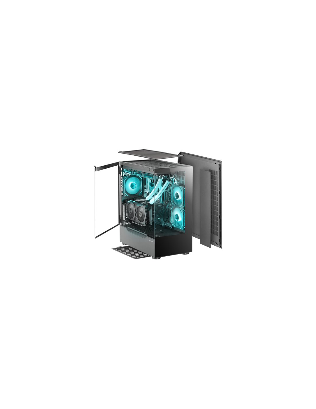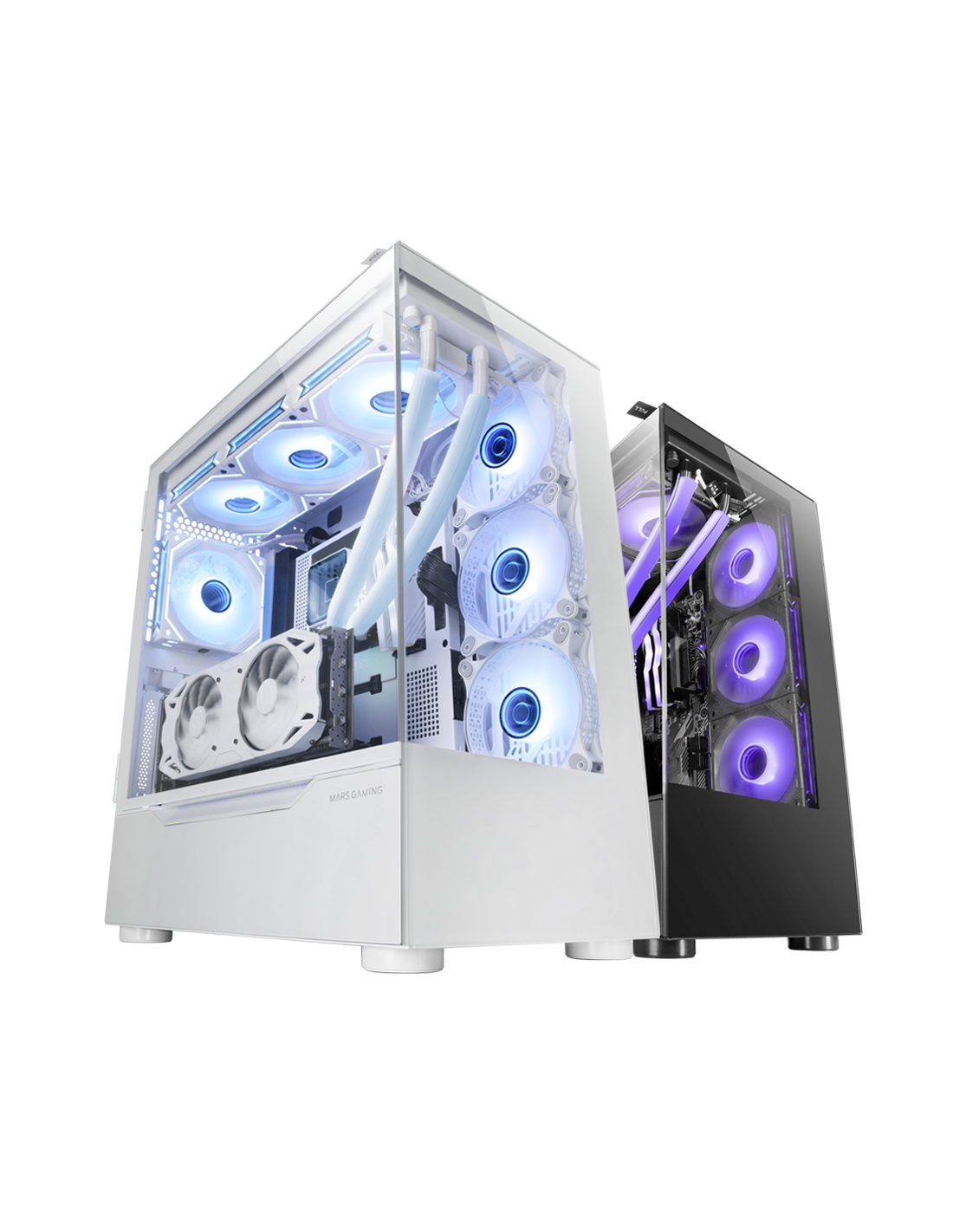 Die MC-ULD mit seinem individuellen Design verfügt über ein doppeltrahmen kontinuierliches gehärtetes Glasscheiben, das einen Panoramablick auf das Innere der Box bietet, und ein fortschrittliches Kühlsystem, das den Gesamtträger für flüssige Kühlung enthält. Der Turm verfügt über eine vertikale Doppelkammerstruktur und erweiterte XXL-Kapazität, die mit E-ATX-Basisplatten und mehreren Festplatten kompatibel ist, ideal für Hochleistungsspiele und anspruchsvolle Projekte.