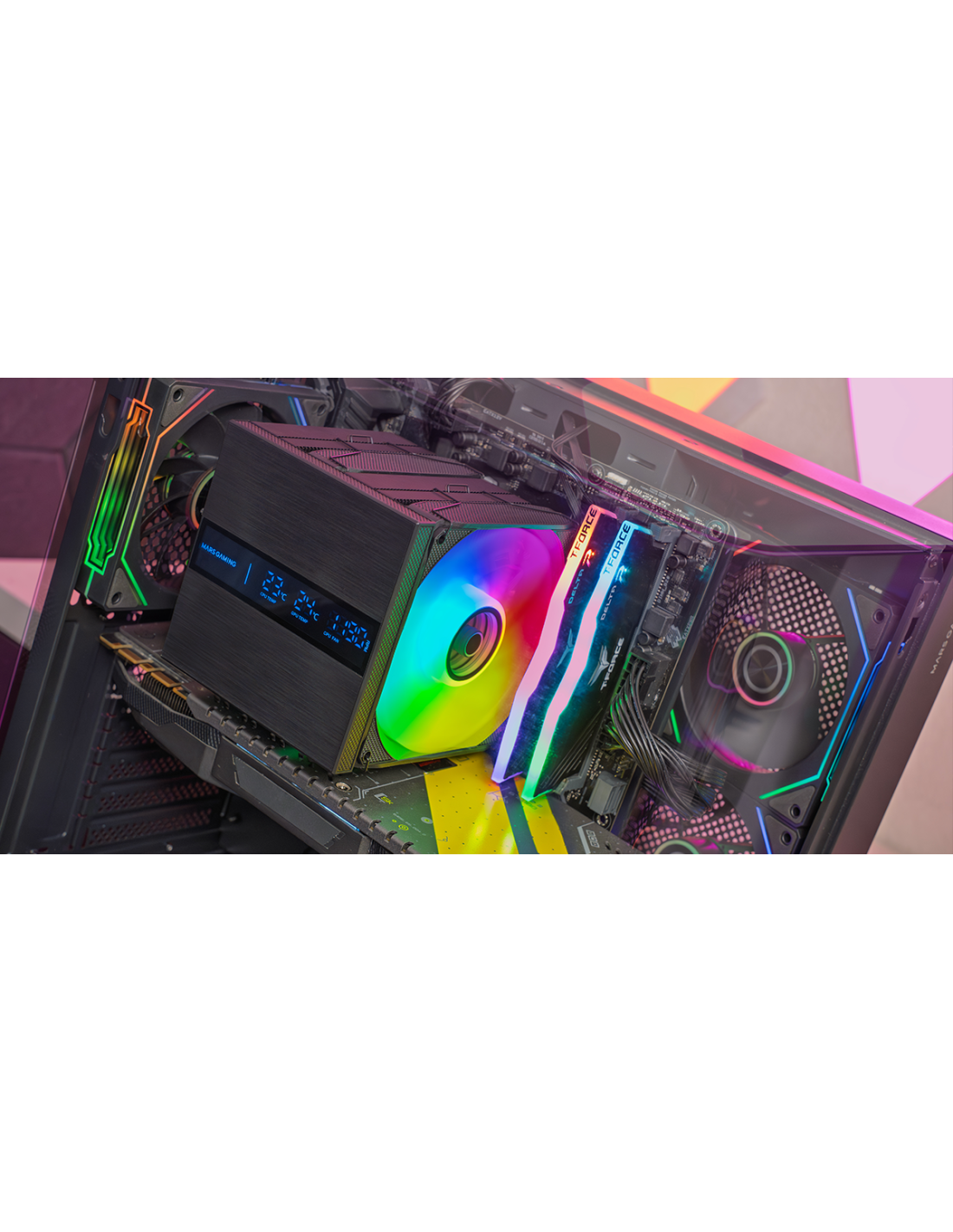 The MCPU-LCDPRO is designed for the highest performance CPUs where stable temperature, true silence and premium look is demanded. Its Dual-Tower design with 8 HCT heatpipes and 380W TDP, combined with 2 x 120mm PWM FDB fans, moves more air more consistently across a huge fin surface to sustain performance under load. In addition, it integrates a spectacular XL LCD display that shows CPU TEMP / GPU TEMP + RPM in real time, without relying on overlays or windows.