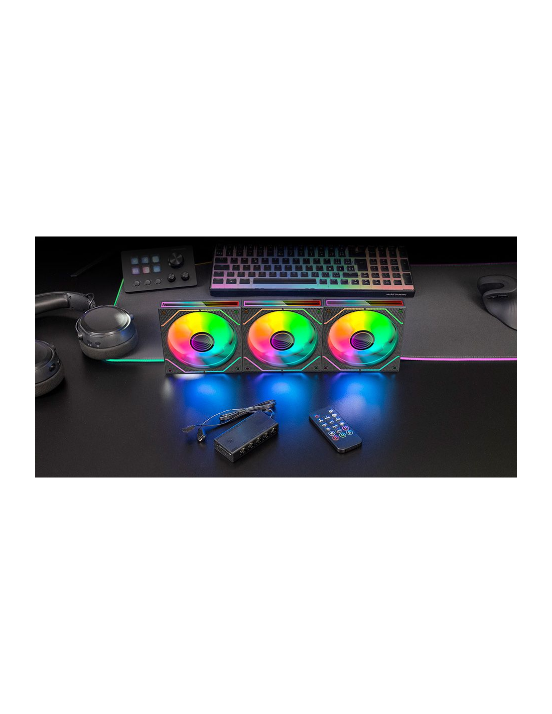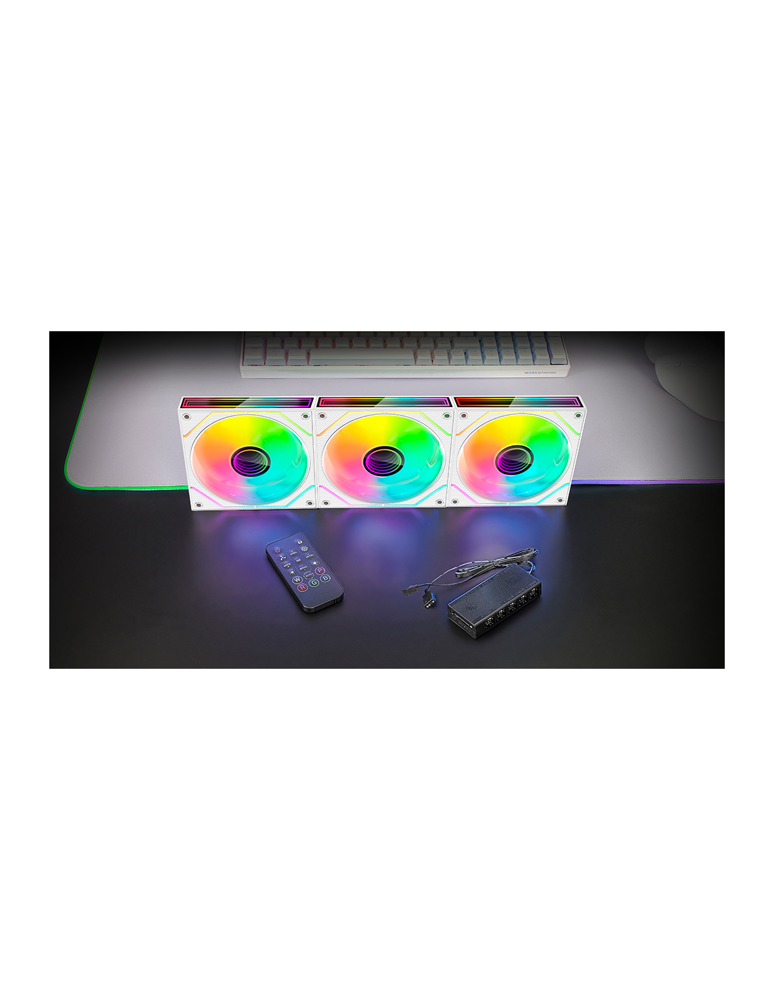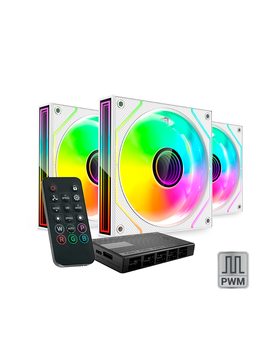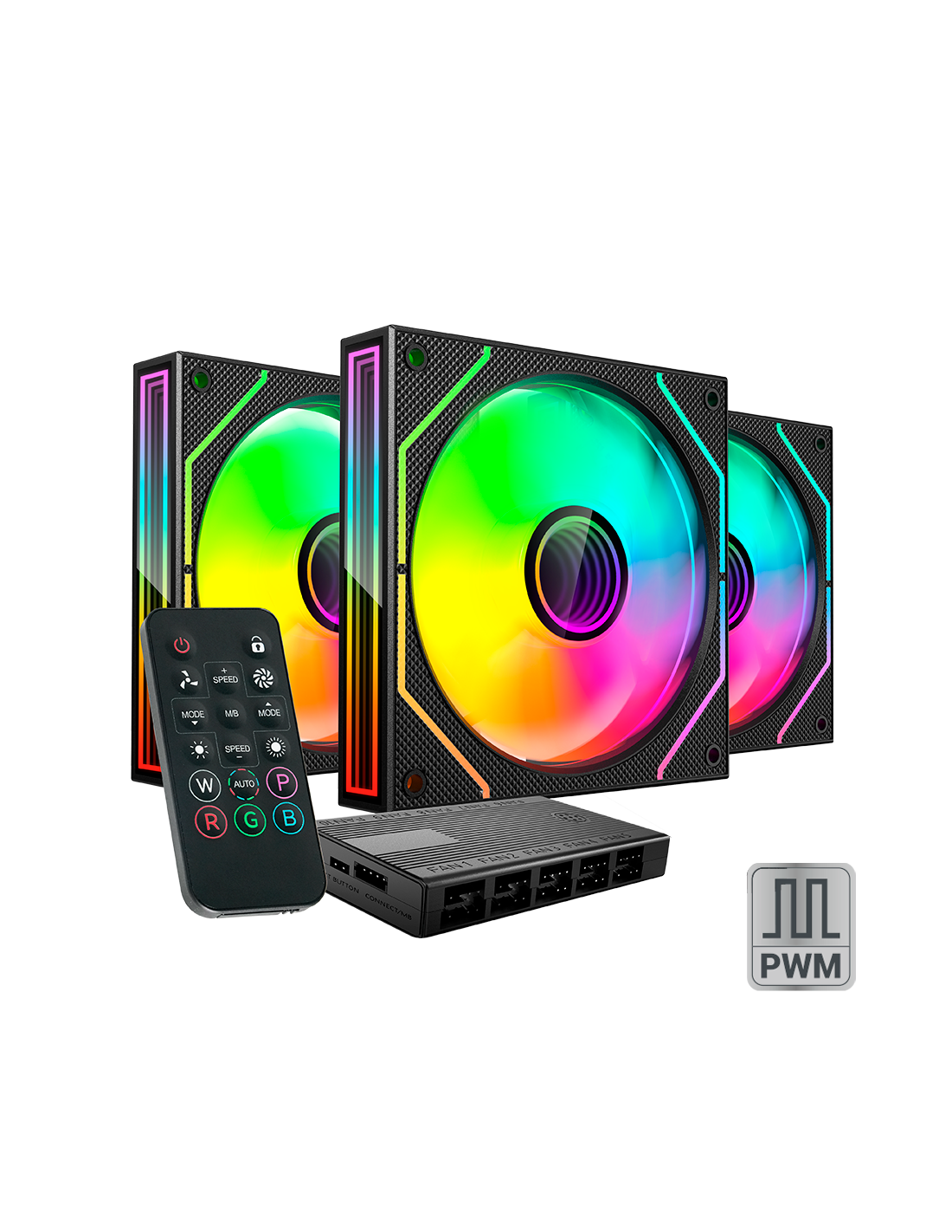 The MF-3DProkit fan kit combines advanced design, performance and customization with 3D Infinity Mirror lighting with 360º effects and a dynamic ArgB frame. Equipped with 120mm fans with FDB bearings, guarantees silent and durable operation. Your ArgB Hub for up to 10 fans and its remote control allow adjusting speed and lighting in real time. Compatible with ASUS Aura Sync, Mystic Light Sync and RGB Fusion, it is perfectly integrated into any Gaming Setup.
