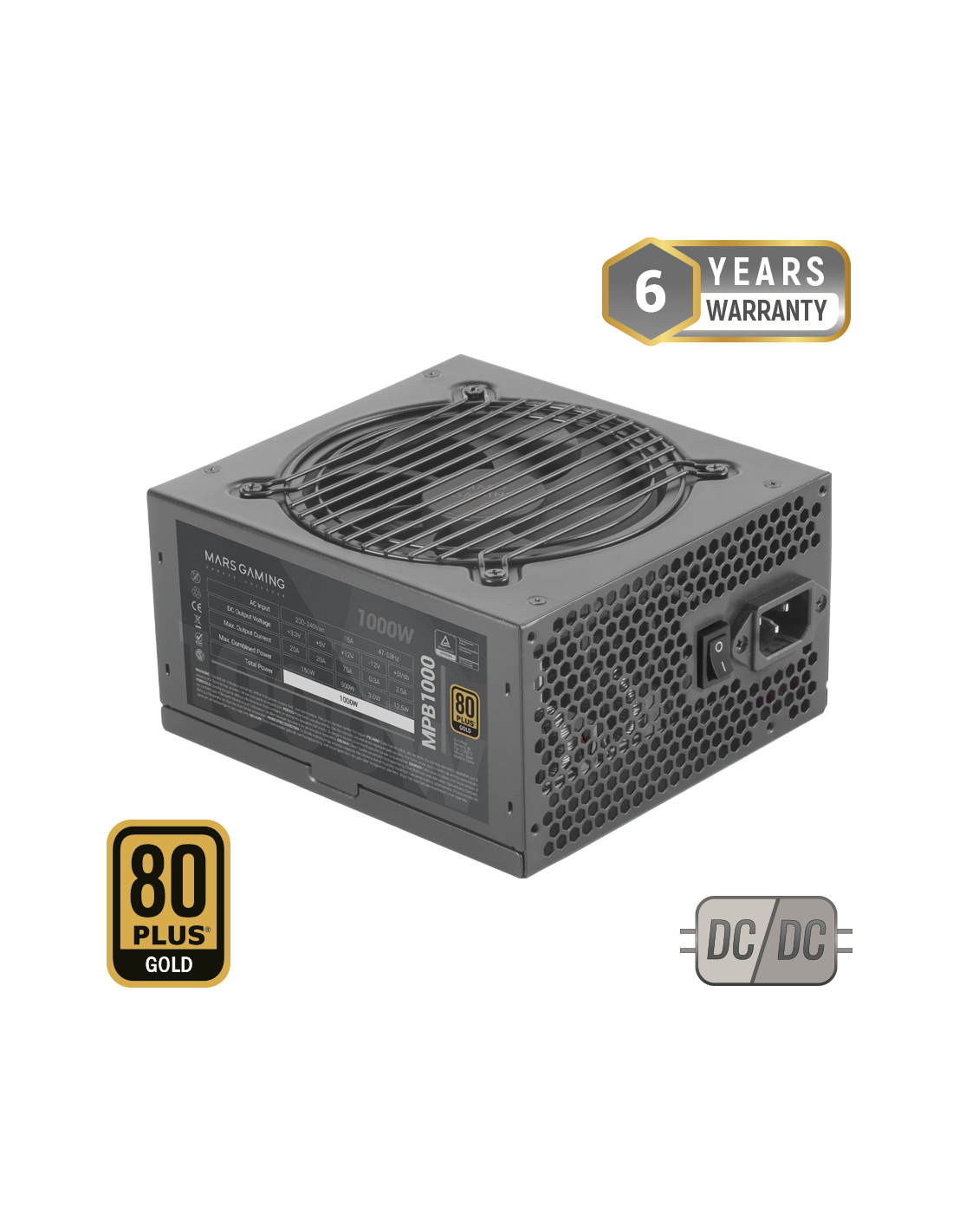 1000W ATX DC-DC power supply, with 80plus GOLD certificate and 6 years warranty thanks to the latest SMD manufacturing technology. Exceptional performance with ultrasilencious operation using AI-RPM technology that regulates the operation of the FDB fan of 120mm. 99% Digital Efficiency APFC, 90% Electrical Efficiency, Extra-Land Black Flat Cables and Integrated Protection and Safety Systems.