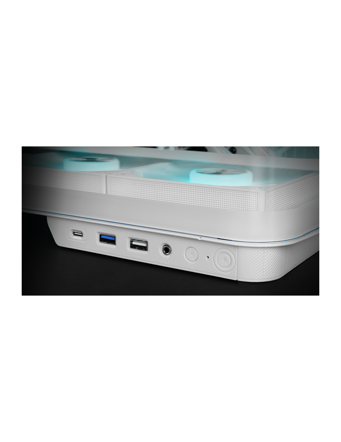 The MC-Infinio tower carries the gaming design to another level with its enveloping structure and panoramic view without interruptions. Its exclusive horizontal curved temperate glass, spread in one piece from the front to the side, together with a glass upper panel, create a fluid and non-frame effect that enhances each component and LED lighting. Equipped with 2 pre-installed rear ArgB fans, support for up to 8 fans and liquid cooling of up to 360mm, guarantees a thermal dissipation. Your vertical installation system for GPU, compatibility with graphic cards of up to 383mm, versatile storage bays and advanced connectivity with USB-C make it a perfect performance, customization and aesthetic option.