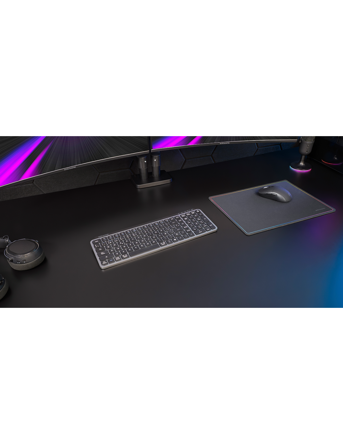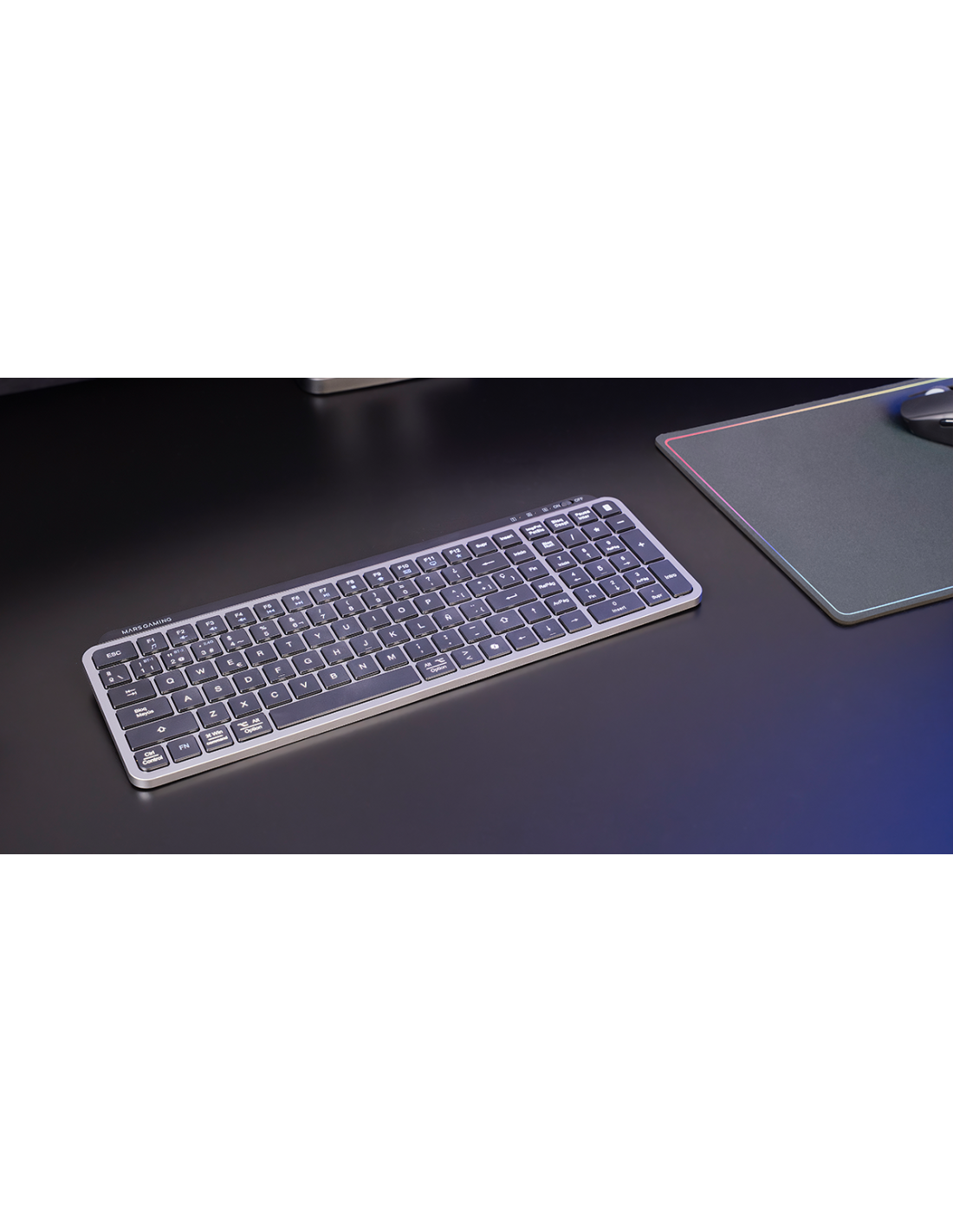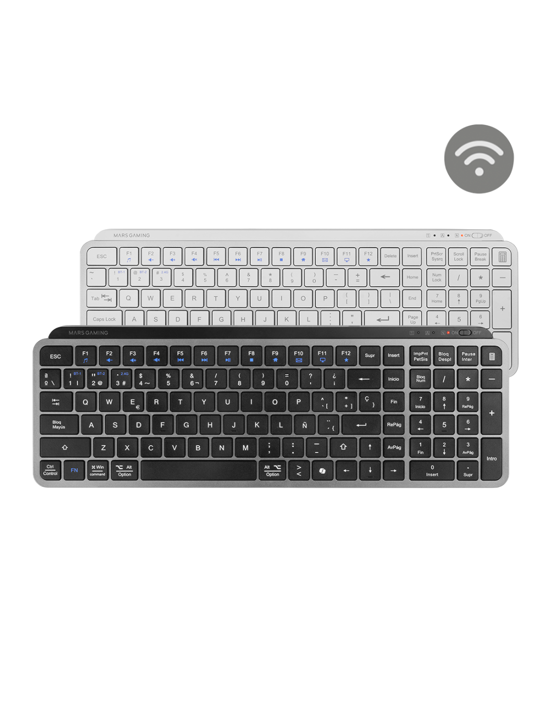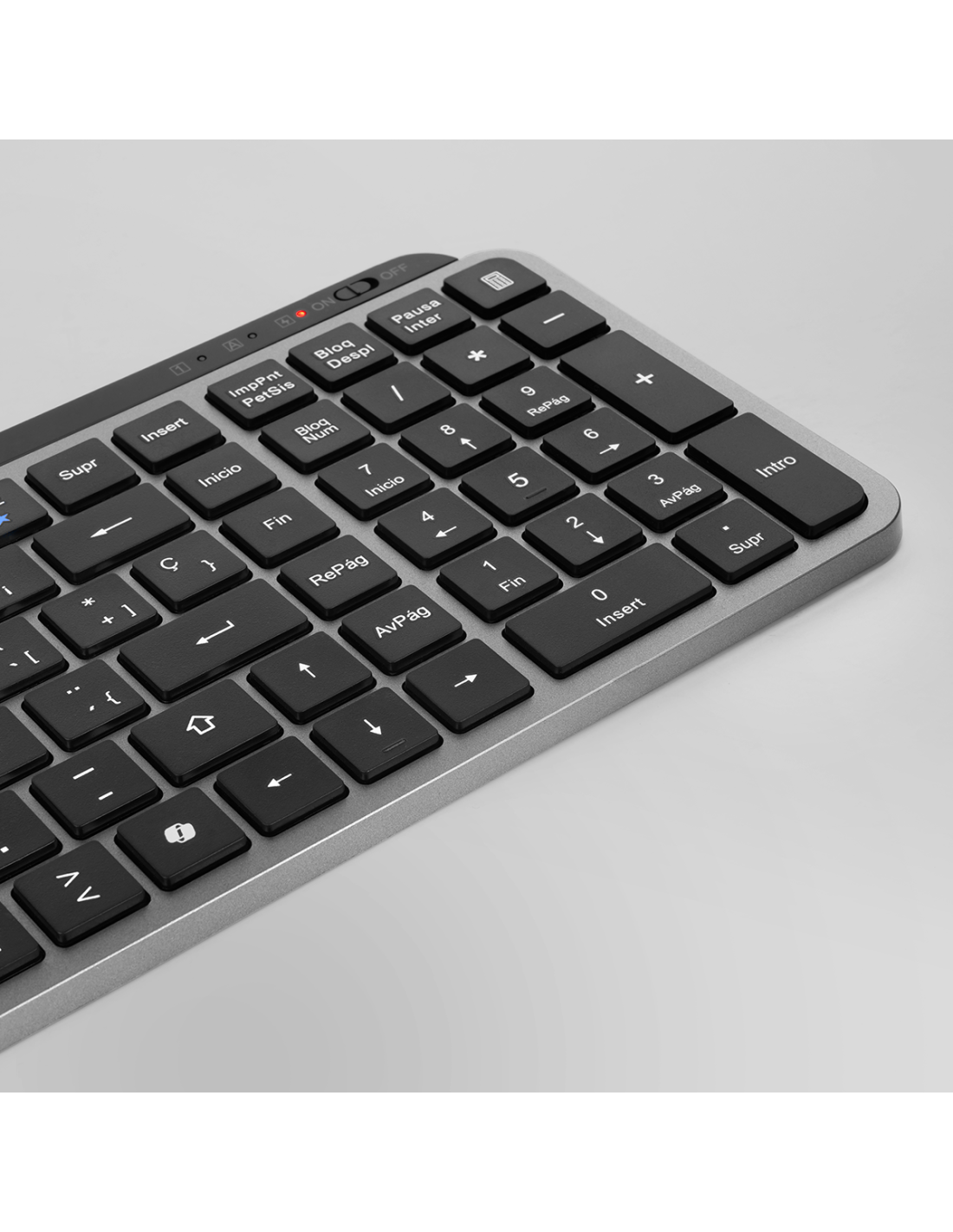 The MK SILENKEYS is the ultimate wireless keyboard for working and creating in silence. Its compact full format design with ultra-quiet scissor switches offers smooth, fast and accurate typing, perfect for long days. It features triple wireless connectivity (dual Bluetooth 5.1 + 2.4GPRO), dedicated Copilot AI key and multimedia shortcuts, plus a long-lasting rechargeable battery for up to 200 hours of use. All this in a slim body of only 384×132×24 mm and 489 g, with dual PC/Mac layout.