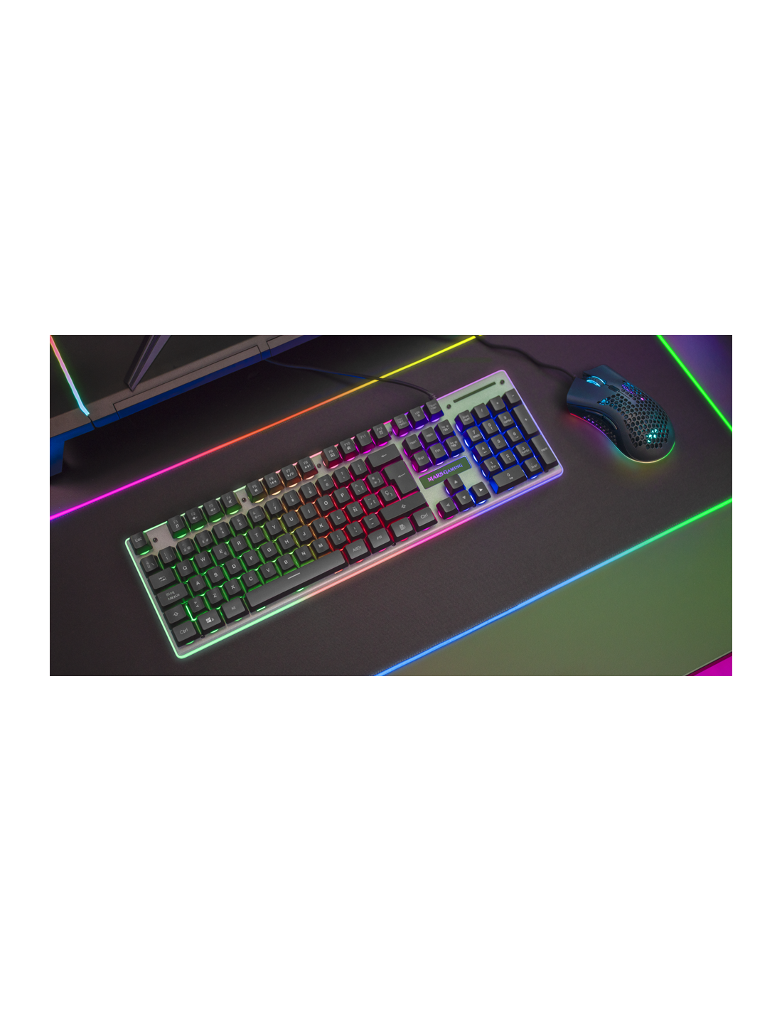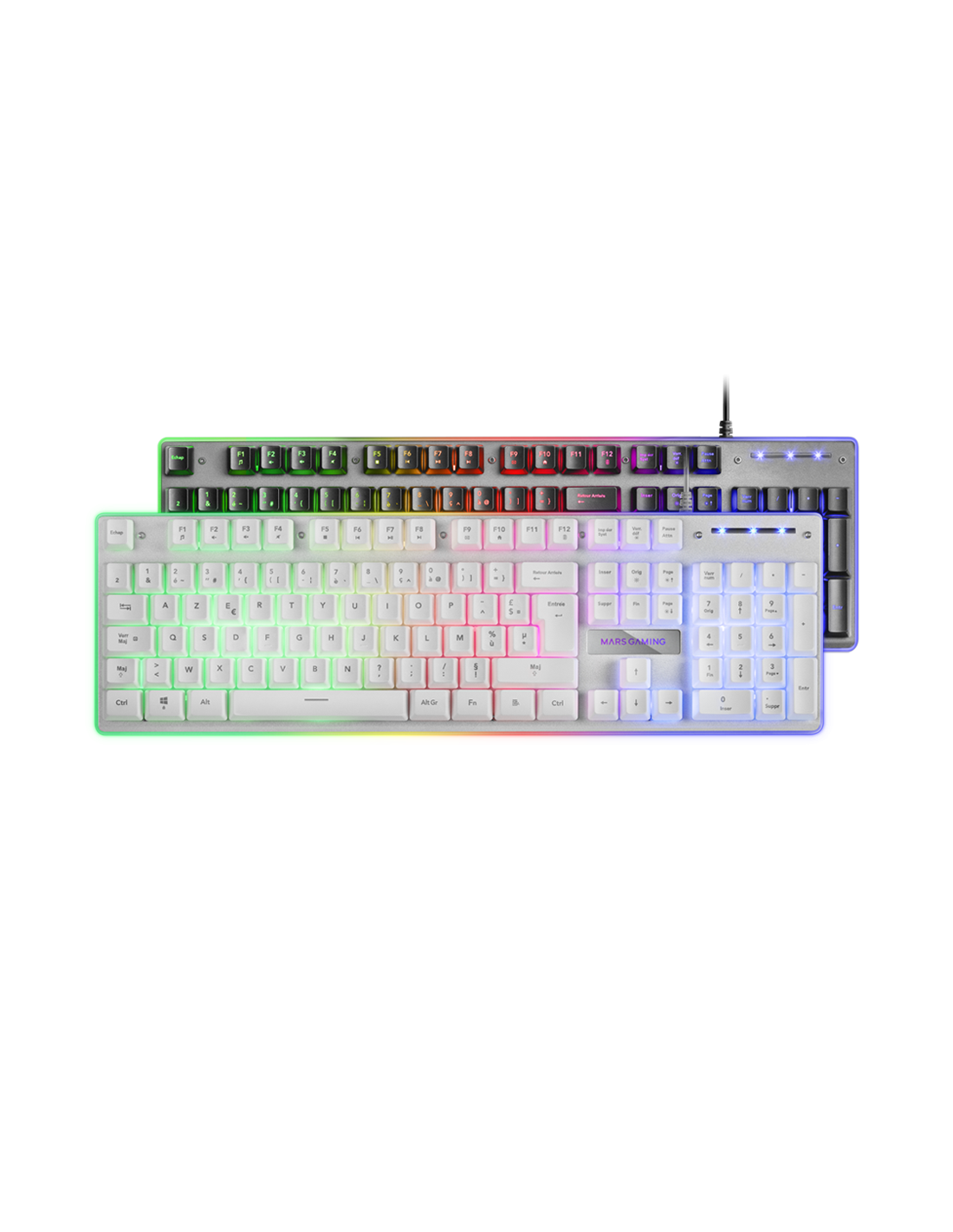 Premium benefits and a spectacular look at your fingertips. Equipped with H-Mech hybrid pulse technology, a Rainbow FRGB lighting on keys and peripheral with Halo effect, upper aluminum panel and reinforced ABS base.