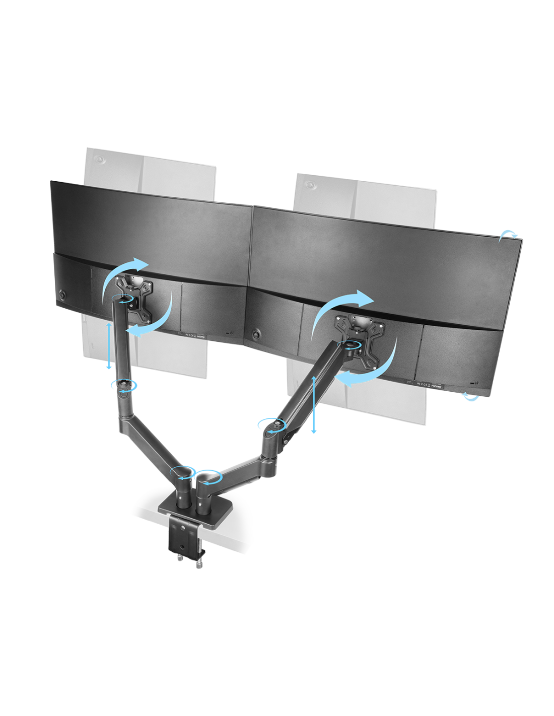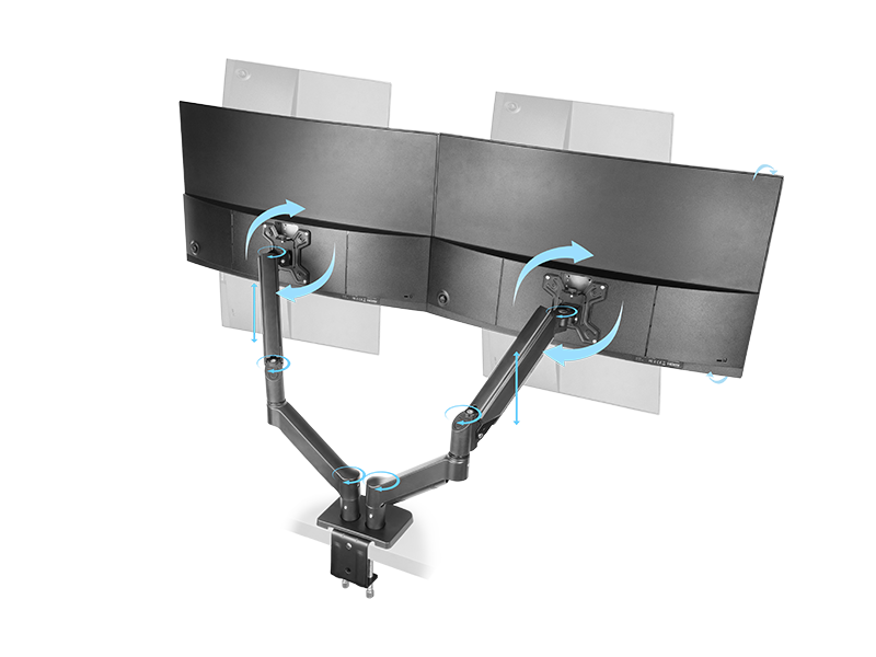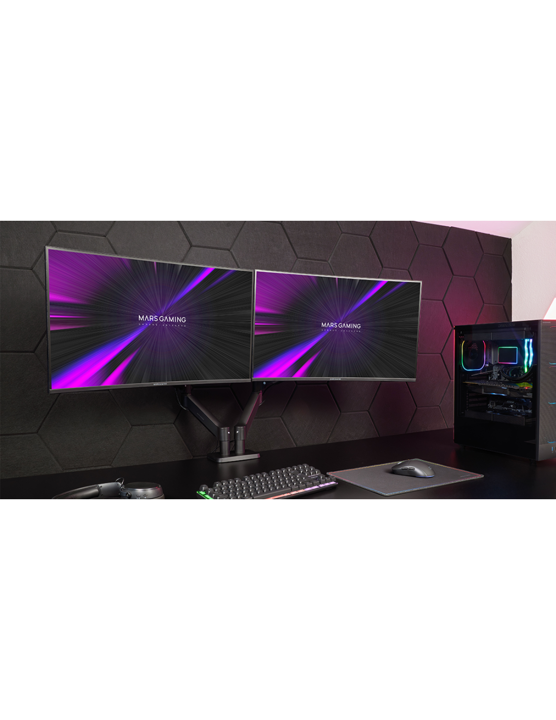 The MARM-PRO2 is the ultimate solution for those who work, create or play with two monitors comfortably and productively. Its dual gas spring system offers independent, smooth and precise adjustments to each screen-height, tilt, swivel and rotation-for the perfect position every time. Compatible with monitors from 13" to 32" and up to 10 kg per arm, it integrates VESA 75x75 / 100x100 support for versatile installation and a clean, stable, professional setup.