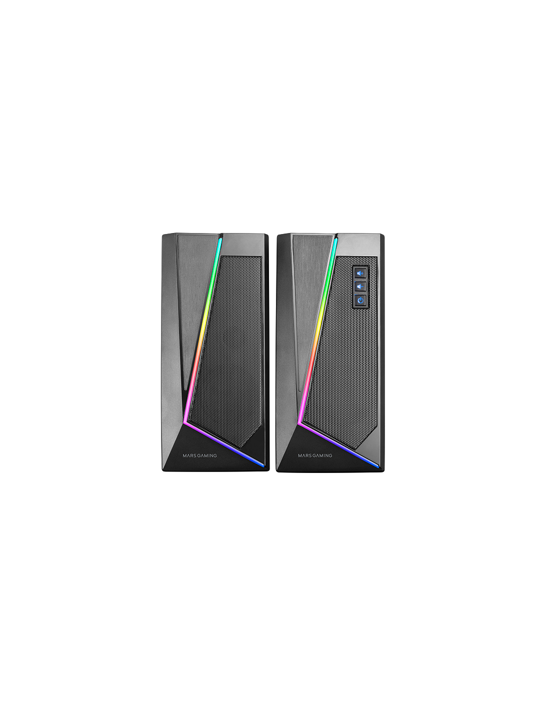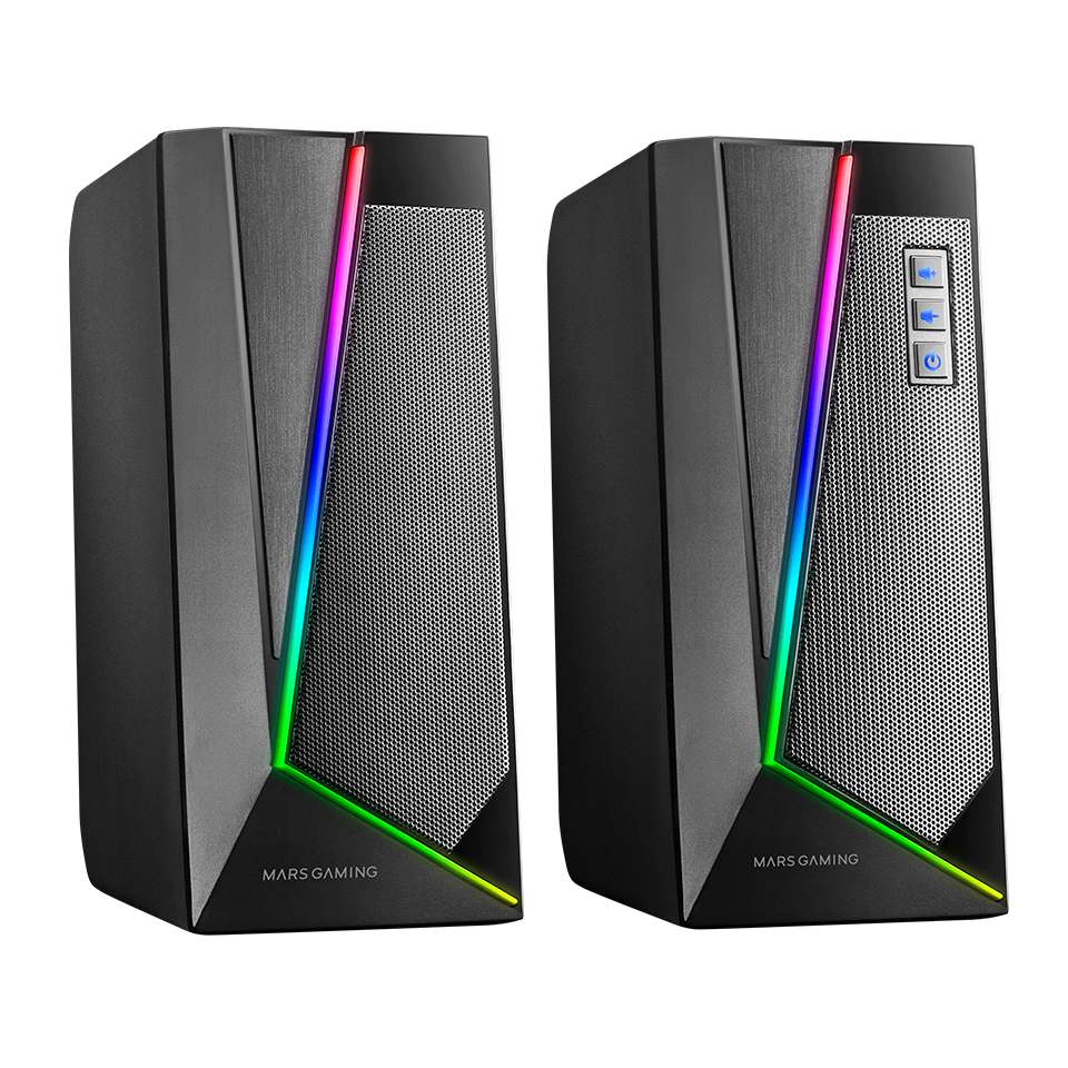 Impactantes altavoces con 20W de potencia, avanzado procesador de sonido DSP con espacialidad multi-nivel y graves mejorados, espectacular sistema de iluminación RGB dinámico y conectividad total jack + Bluetooth 5.0.