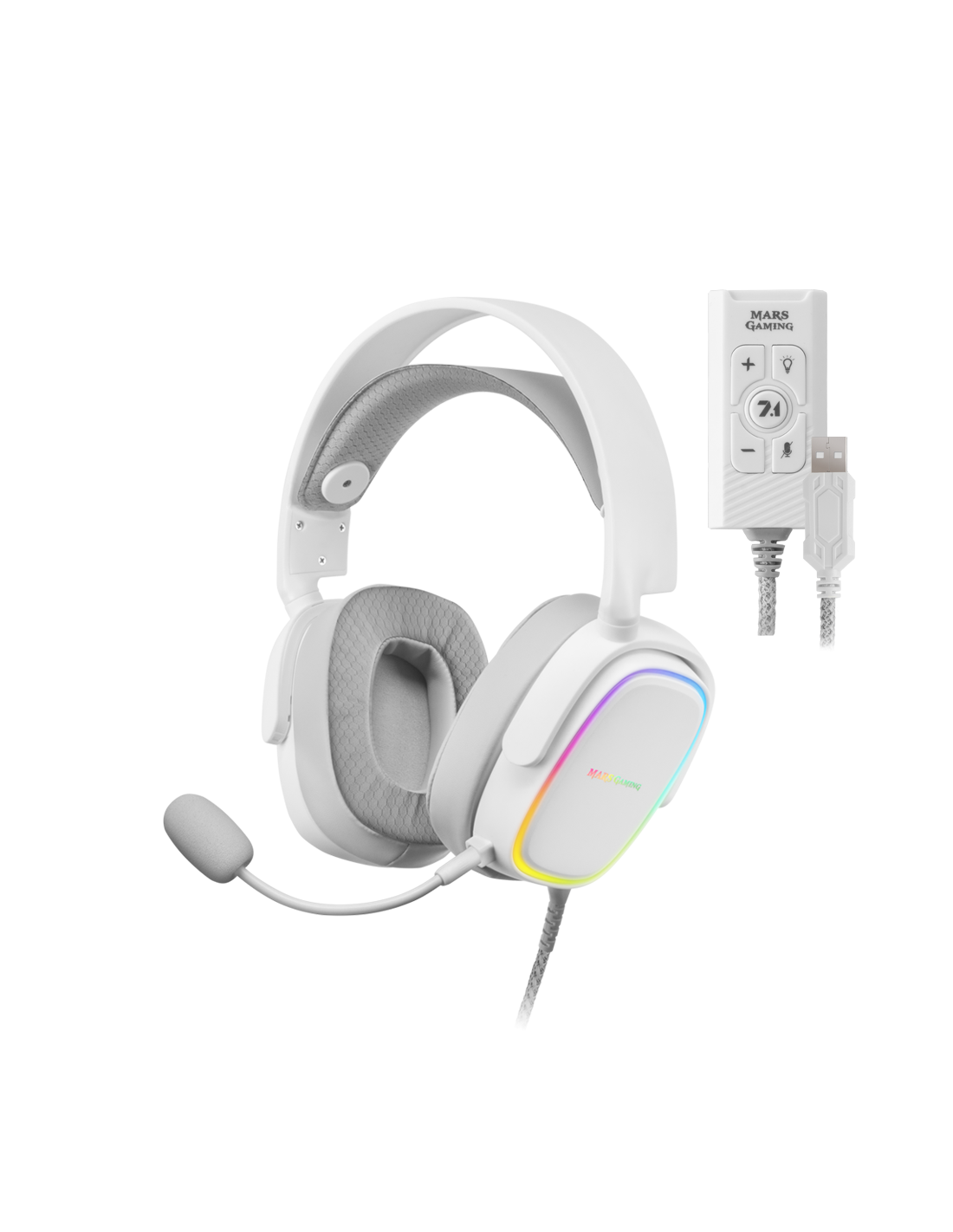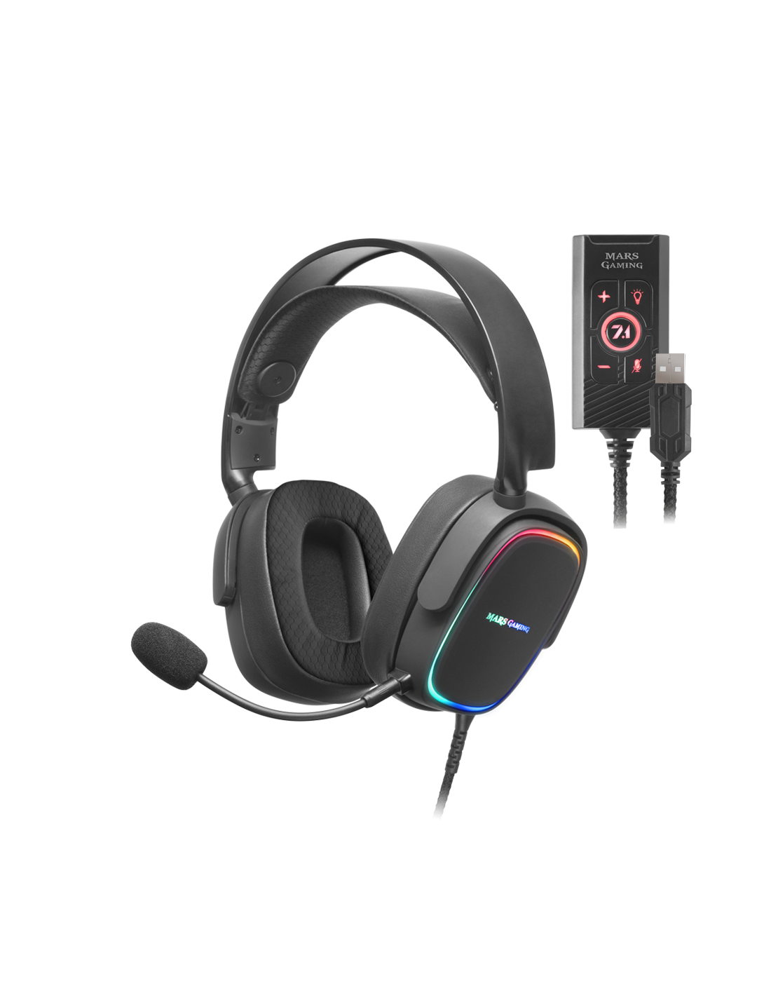 El combo de audio MCPMHAX2 cuenta con los dispositivos perfectos para ofrecerte una calidad de sonido y experiencia de juego únicas. Los auriculares gaming over-ear están equipados con una franja externa de iluminación RGB Flow y drivers de sonido Hi-Fi para máxima calidad. Combínalos con la tarjeta de sonido externa USB 7.1 más completa y avanzada ¡y lleva el sonido de tus auriculares al siguiente nivel!
