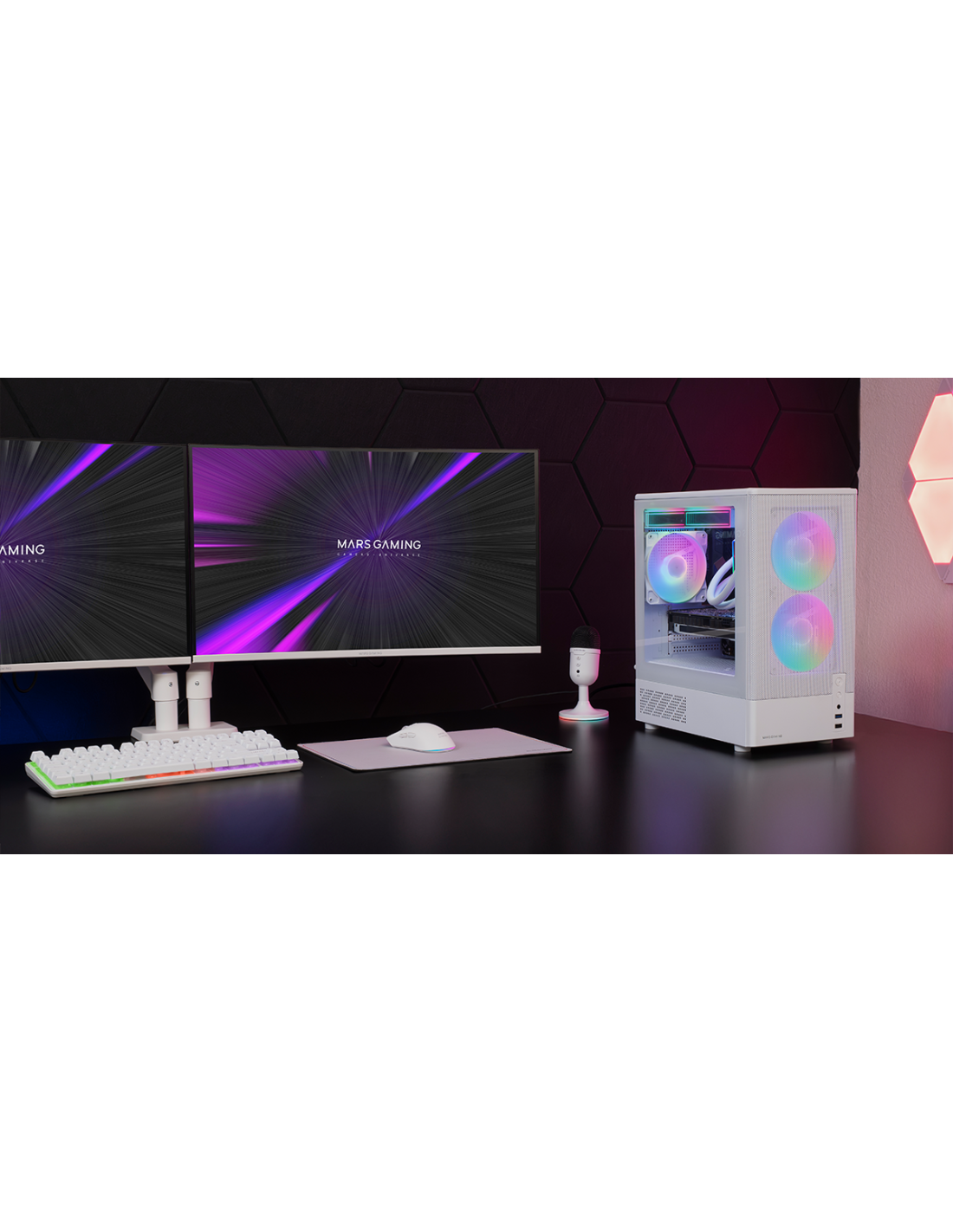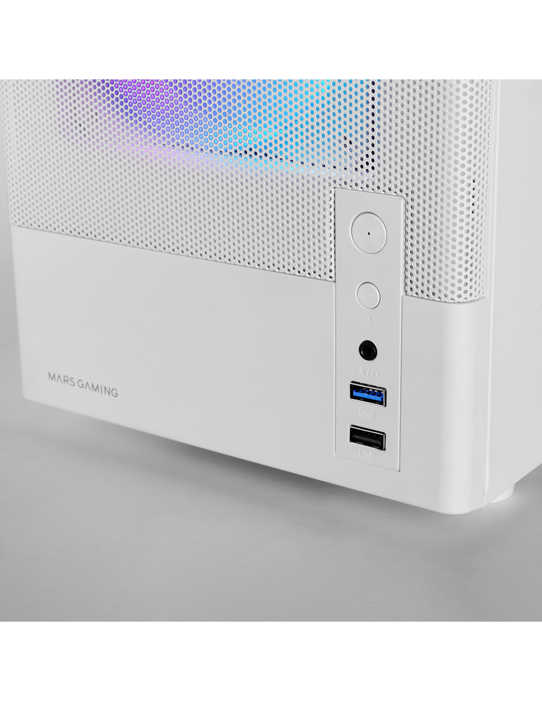 La MC ONYX es una caja microATX de alto rendimiento diseñada para ofrecer airflow extremo en un formato compacto. Su frontal mesh metálico maximiza la entrada de aire, mientras que la ventana lateral de cristal templado muestra tu hardware con claridad. Incluye 3 ventiladores ARGB de 120 mm con rodamientos FDB (2 frontales + 1 trasero) y soporte para refrigeración líquida de hasta 240 mm en la parte superior, además de espacio para hasta 7 ventiladores de 120 mm. Todo ello con fuente en cámara inferior separada, GPU de hasta 292 mm y disipadores de CPU de hasta 165 mm.