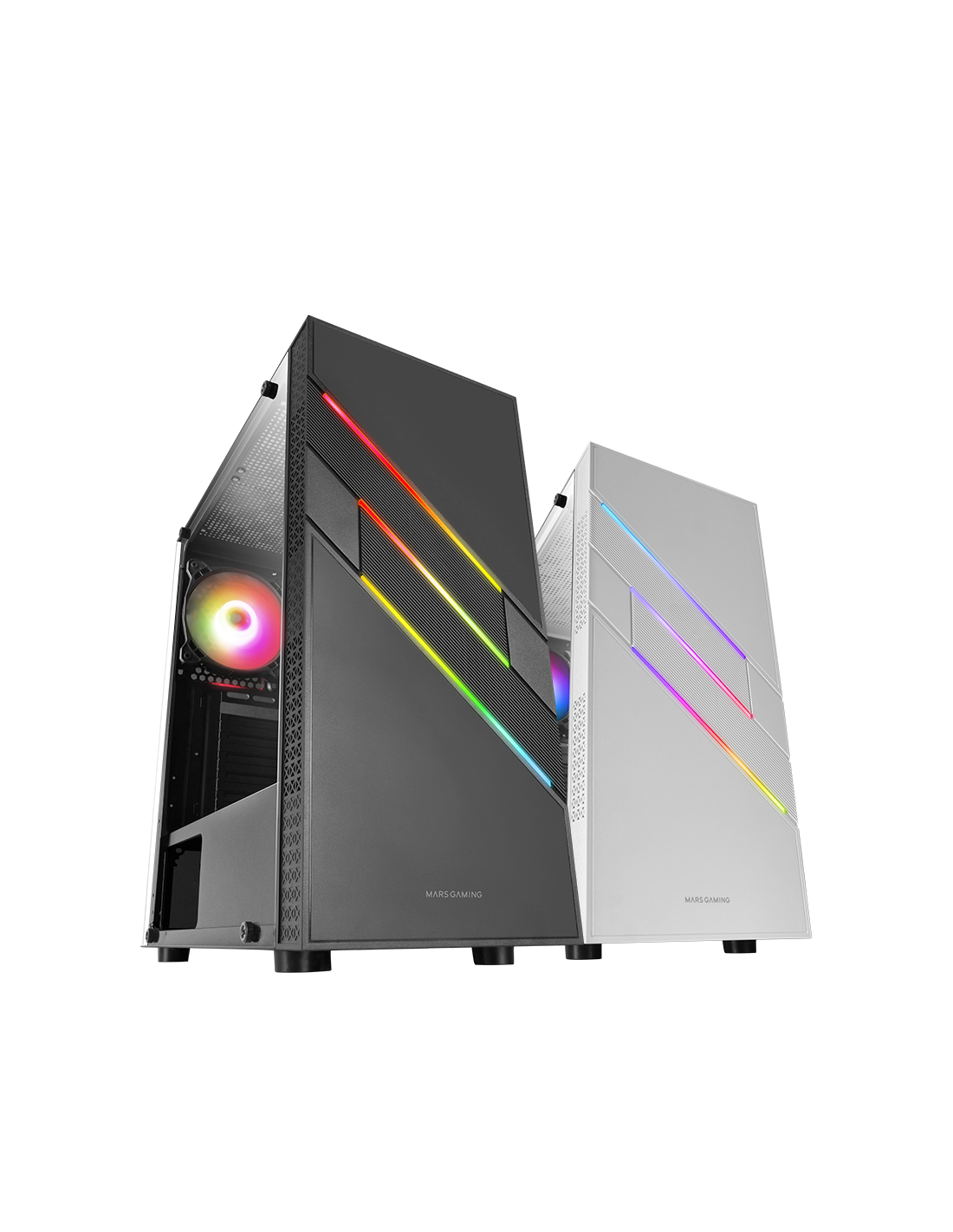 Chassis ATX XL con soporte frontal y superior de refrigeraciones líquidas de 240mm, un completo sistema de iluminación ARGB triple frontal y ventilador trasero sincronizado, y una ventana lateral de cristal templado para mostrarlo todo.