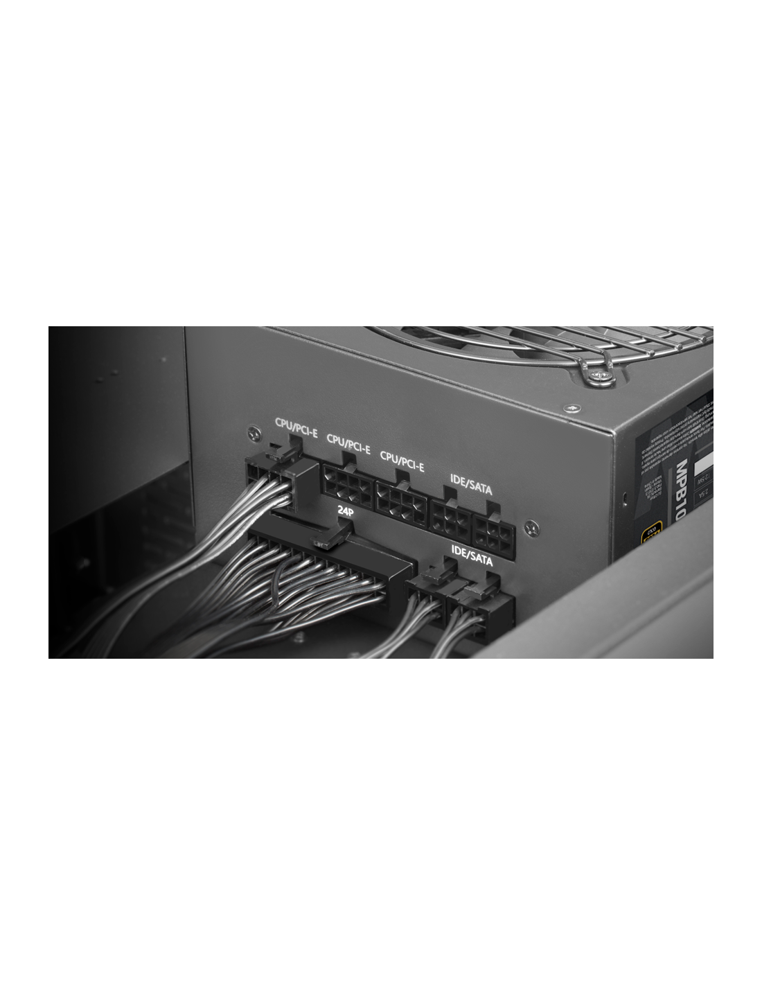 La MPB1000M es una fuente de alimentación ATX DC-DC de 1000W con certificado 80PLUS Gold, raíl único de +12 V y 99% de eficiencia con tecnología ACTIVE-PFC. Esta fuente está diseñada para ofrecer un rendimiento excepcional mientras mantiene la máxima eficiencia energética y un funcionamiento ultrasilencioso mediante la tecnología AI-RPM que regula el funcionamiento del ventilador FDB de 120mm. Además, cuenta con un sistema de cableado completamente modular compuesto por cables negros y extraplanos que facilitan su instalación.