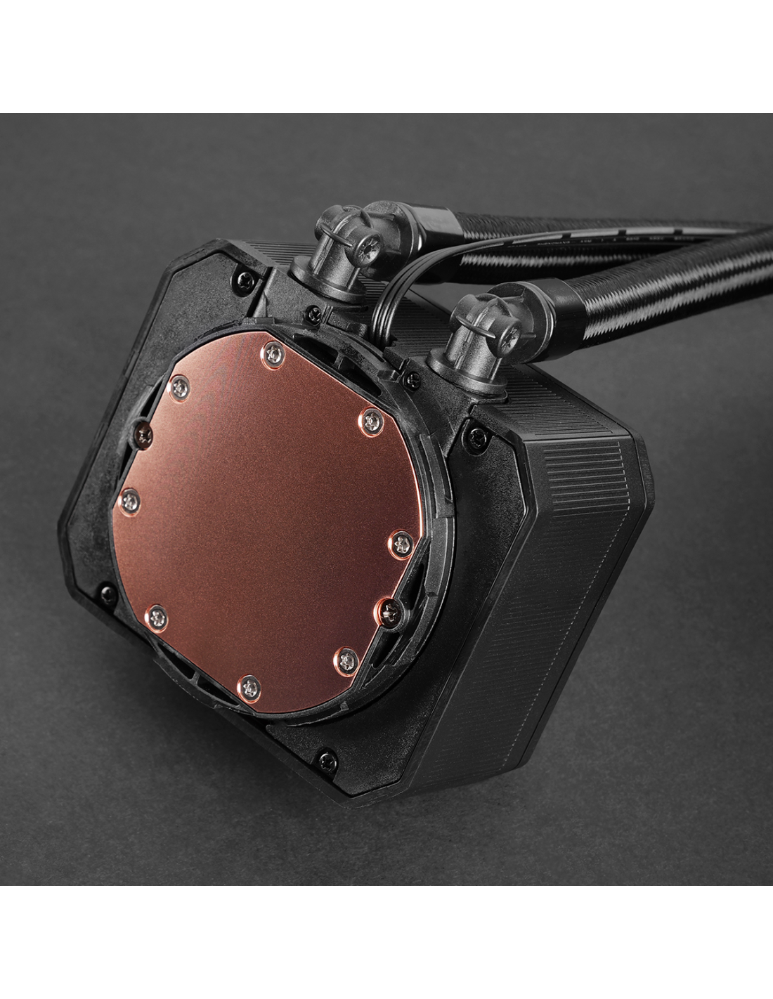 La ML-TWO360 es una solución de refrigeración líquida AIO que combina diseño ARGB premium, rendimiento térmico de última generación y un funcionamiento ultrasilencioso. Con una bomba de cuarta generación con base de cobre y microcanales, tres ventiladores ARGB de núcleo de cobre, rodamientos FDB de última generación y efecto Infinity Mirror tanto en el núcleo como en los ventiladores, este sistema de refrigeración no solo maximiza la disipación de calor, sino que también transforma la estética de tu configuración. Compatible con placas base ARGB y CPUs de hasta 600W TDP, eleva al máximo tu configuración