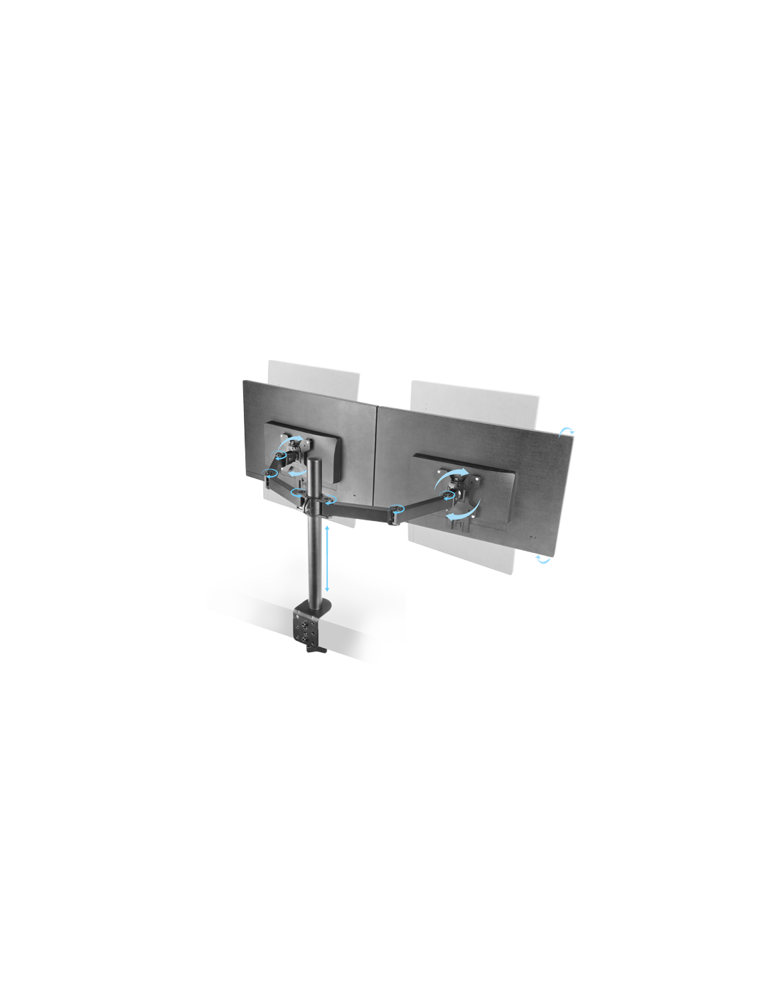 El MARM2 es un soporte de monitor dual de alta calidad, diseñado para pantallas de 13" a 27" y capaz de soportar hasta 8 kg de peso por brazo. Este soporte robusto y resistente cuenta con brazos completamente articulados, gestión de cableado y altura de monitor ajustable.
