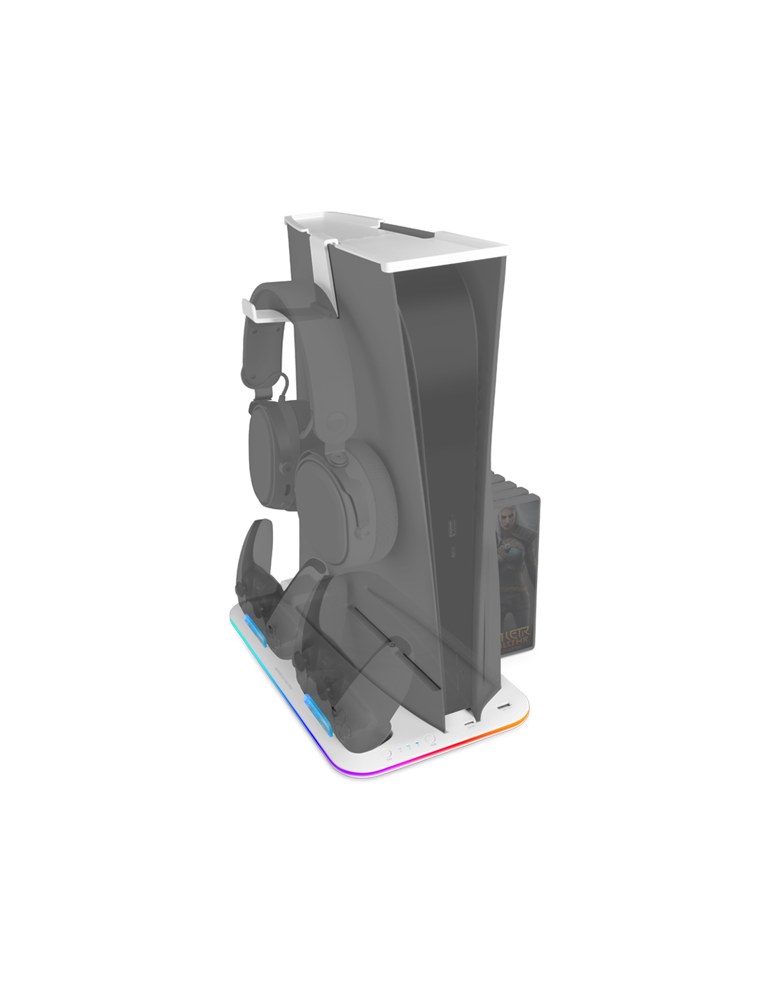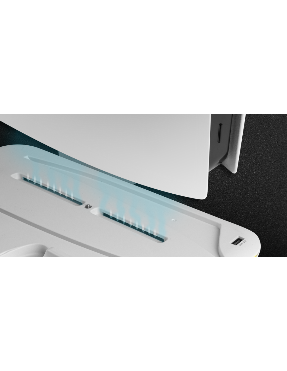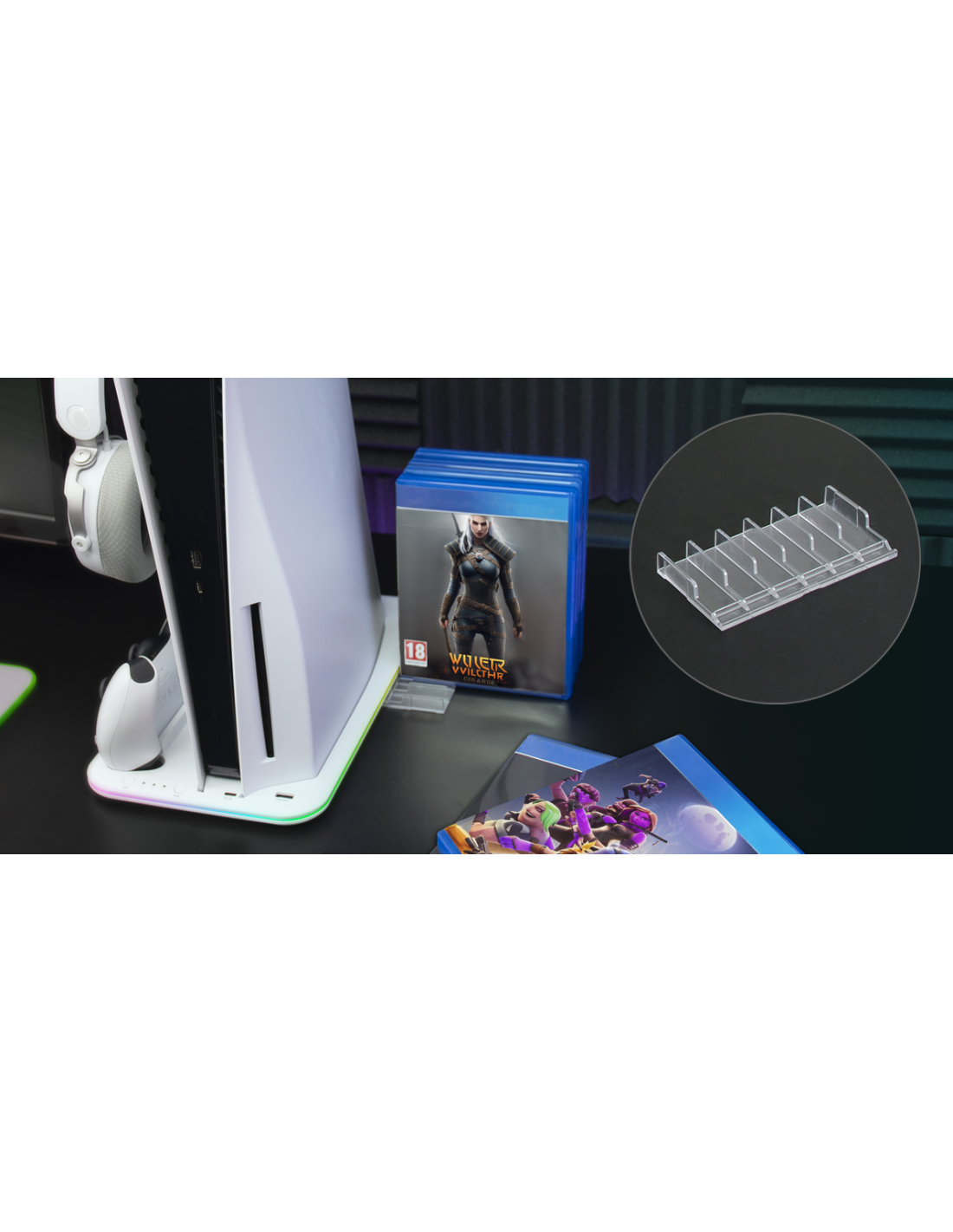 El soporte MPS5-B para PS5 es el accesorio de juego todo en uno perfecto que combina una refrigeración eficiente, carga de mandos, soporte para auriculares y almacenamiento de juegos, asegurando que todos tus accesorios estén convenientemente ubicados en un solo lugar. Compatible con las consolas PS5 estándar y Digital Edition, este soporte está diseñado para mejorar tu configuración de juego y ofrecerte una experiencia de juego perfecta con variedad de modos de iluminación Neón RGB. Con un puerto USB adicional, podrás cargar y conectar tus dispositivos sin necesidad de cables adicionales.