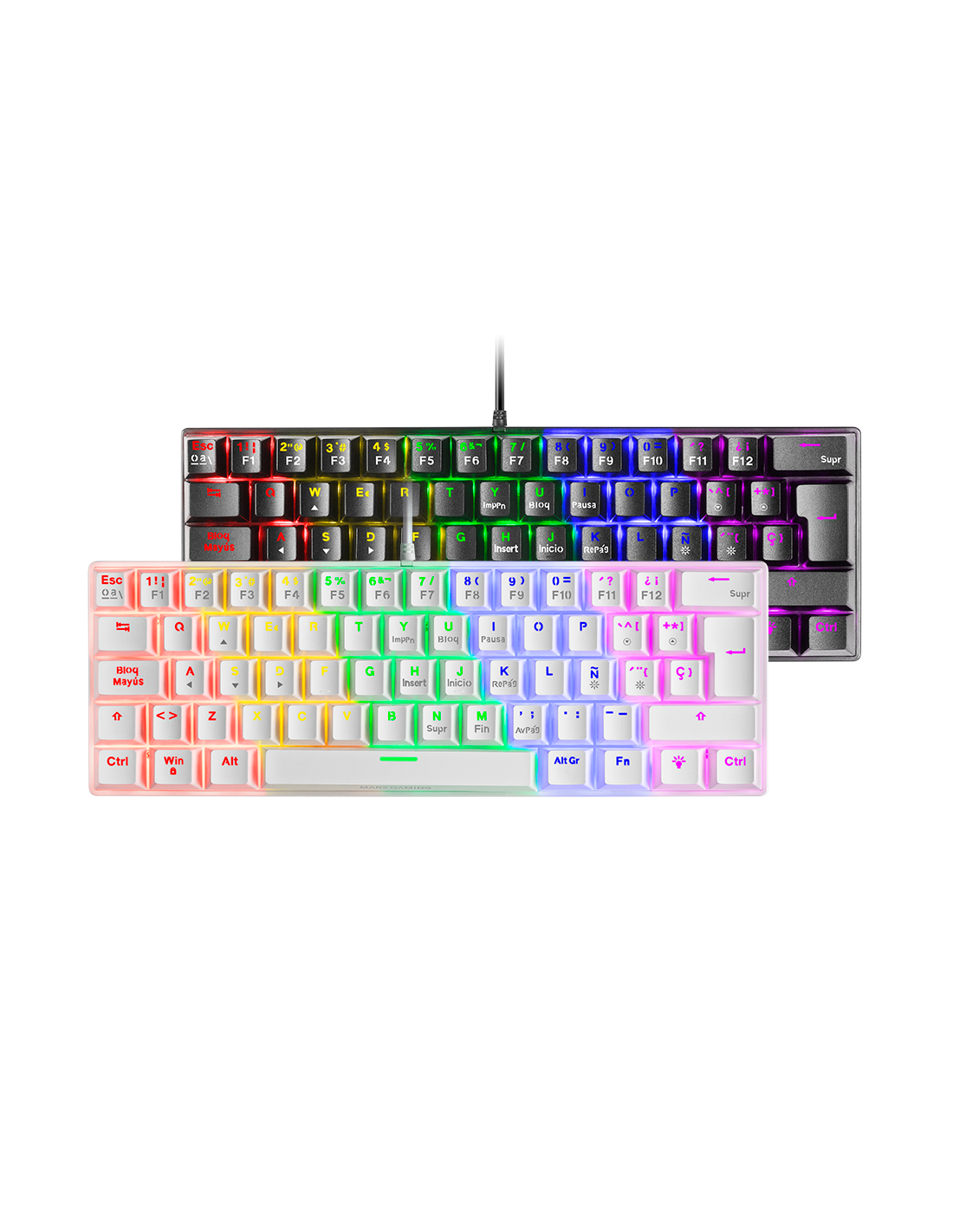 Tamaño ultra-compacto 60% con tecnología mecánica antipolvo de larga duración y resistencia, 12 efectos de iluminación rainbow RGB, teclas ultrarresistentes imborrables de doble inyección, teclas de función y modo juego y Anti-ghosting avanzado. Gracias a sus prestaciones, el MK60 garantiza un rendimiento excepcional en un tamaño que no ocupa espacio y podrás llevar a todas partes. Todo ello con la máxima compatibilidad multiplataforma.