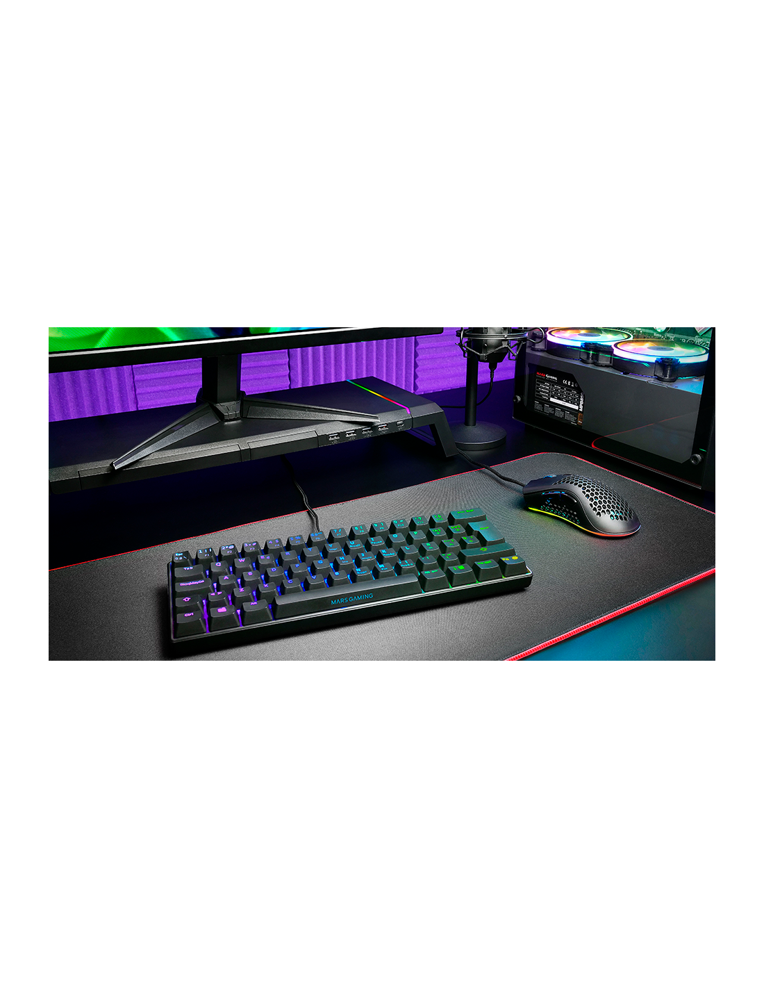 El teclado ultra-compacto tamaño 60% FULL RGB CHROMA que estabas esperando. Con los mejores switches mecánicos OUTEMU PRO, conector USB-C a USB-A extraíble, 14 efectos de iluminación por hardware y un completo software de configuración. Todo ello con la máxima compatibilidad multiplataforma.