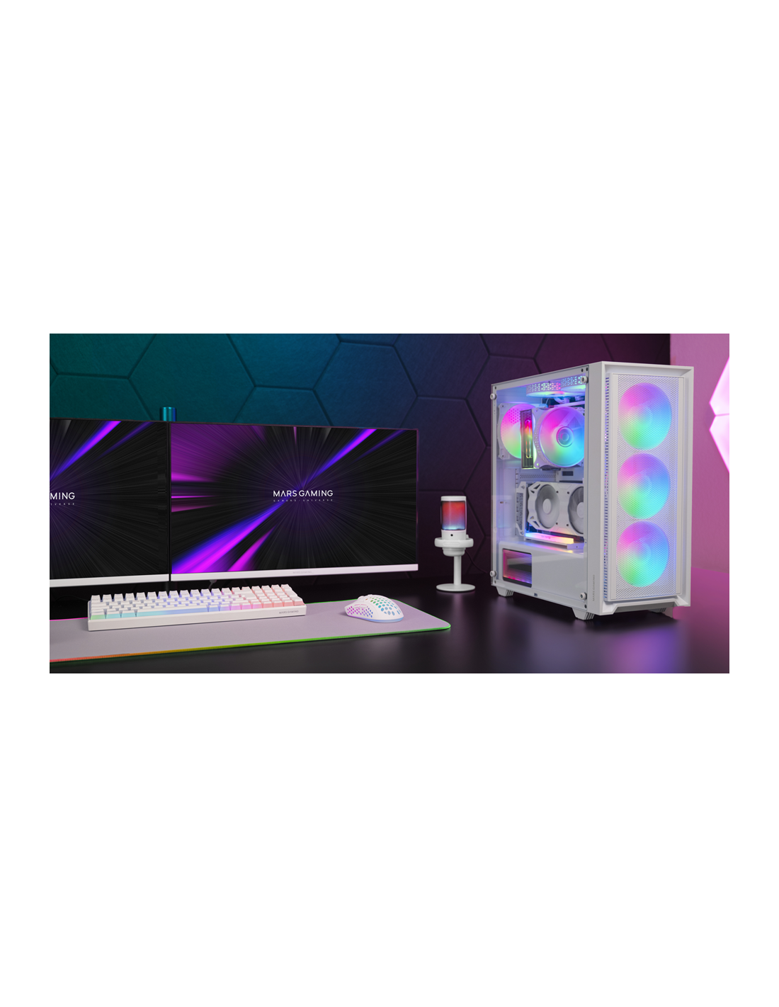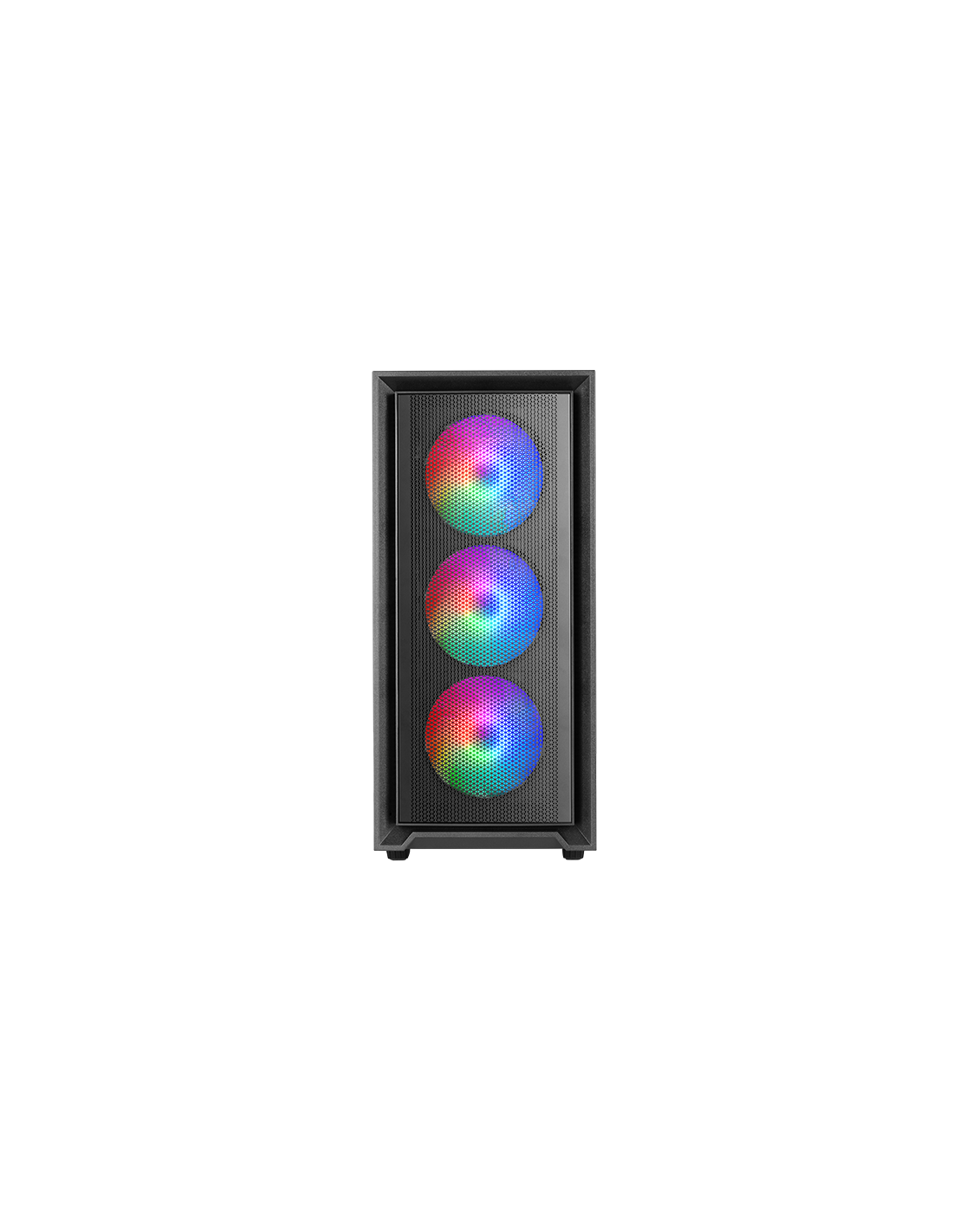 La boîte MC-AIR combine haute performance et design avec sa façade élégante en Mesh et ses 4 ventilateurs FRGB Rainbow de 120mm préinstallés (3 sur le panneau avant et 1 à l'arrière). Sa fenêtre latérale en verre trempé permet d'exposer votre configuration avec style, tandis que sa conception à double chambre optimise le flux d'air pour maintenir vos composants à des températures optimales.