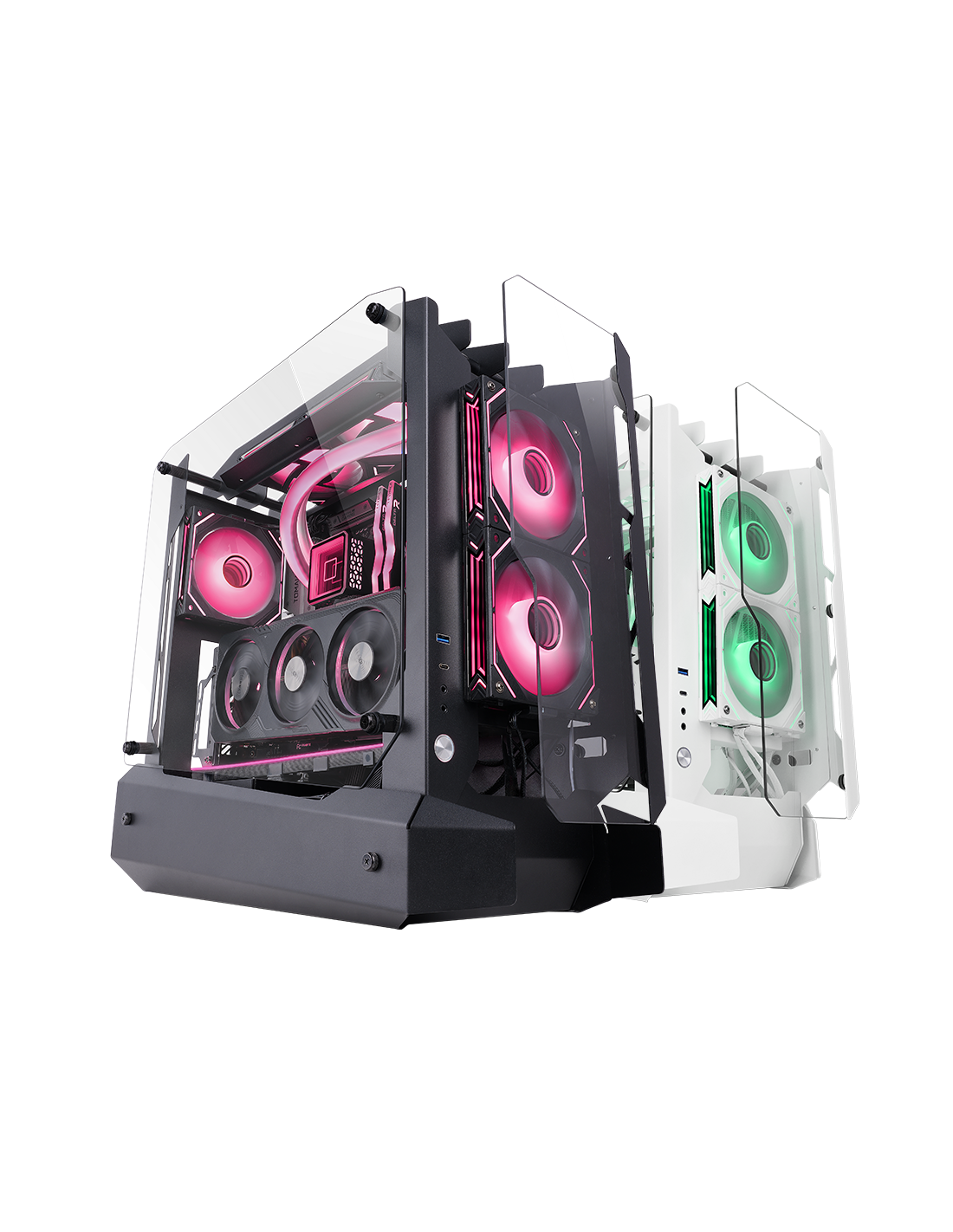 Le boîtier d'ordinateur MC-EDGE combine puissance, style et une performance thermique supérieure. Son design Open Air avec des panneaux en verre trempé surélevés optimise le flux d'air pour garder votre PC gaming toujours frais. Avec de la place pour des configurations avancées, un support pour jusqu'à 7 ventilateurs et des cartes graphiques de dernière génération, c'est le choix parfait pour les gamers exigeants. De plus, sa connectivité avancée et sa gestion des câbles assurent une expérience de jeu impeccable.