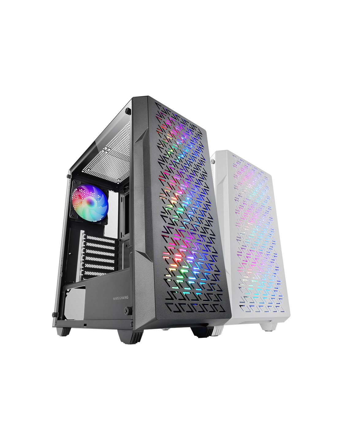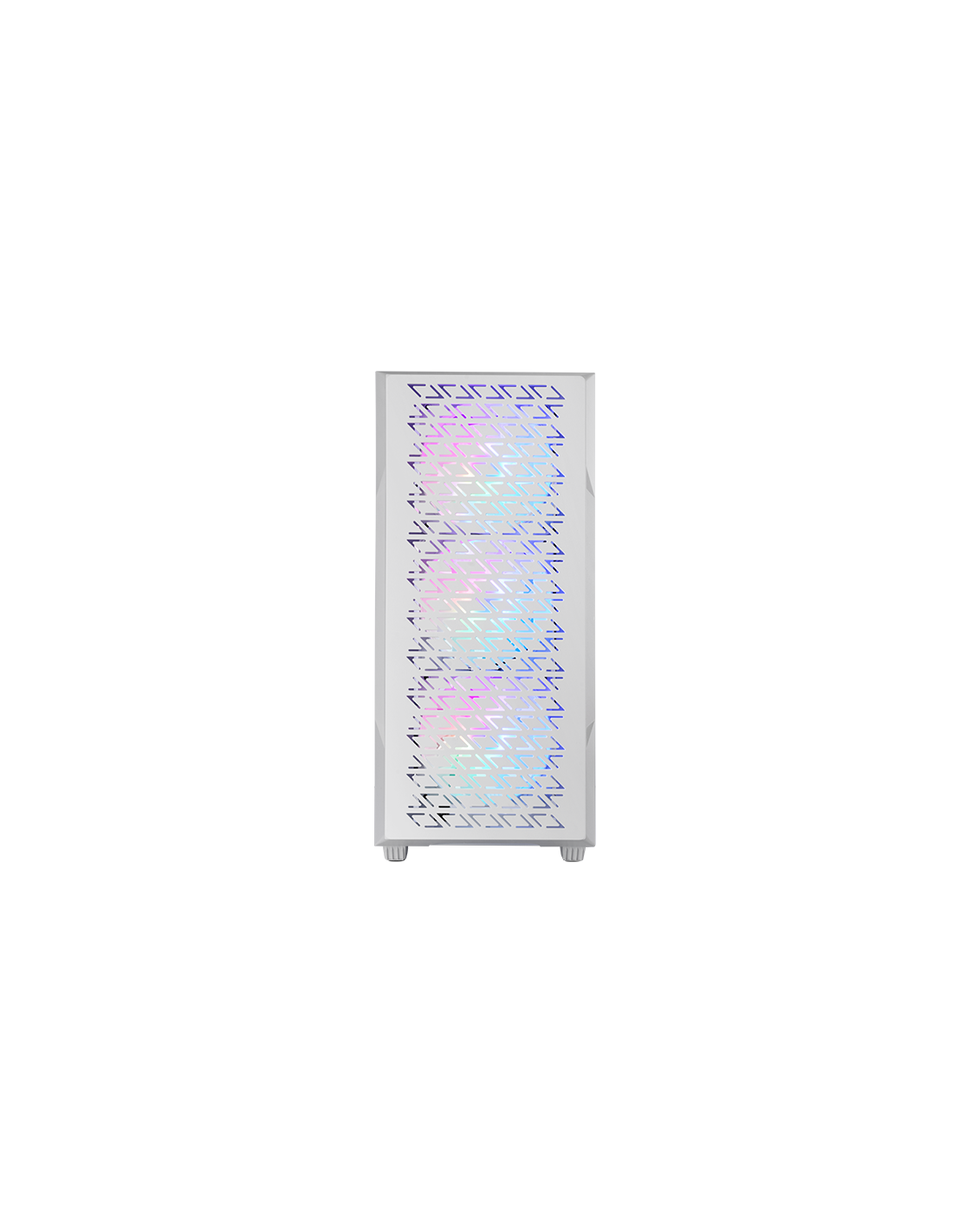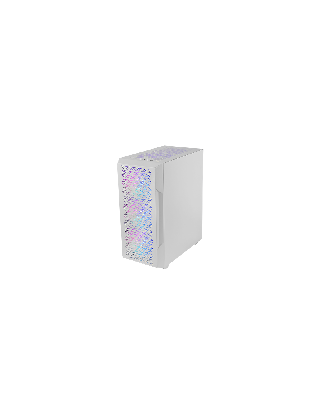 Avec un panneau frontal en Mesh géométrique, 4 ventilateurs FRGB Rainbow de 120mm en série, une fenêtre latérale en verre trempé, un support pour le refroidissement liquide jusqu'à 360mm et une conception à double chambre, le boîtier d'ordinateur MC-GEO fusionne puissance et style dans une tour ATX conçue pour maximiser le refroidissement et les performances.