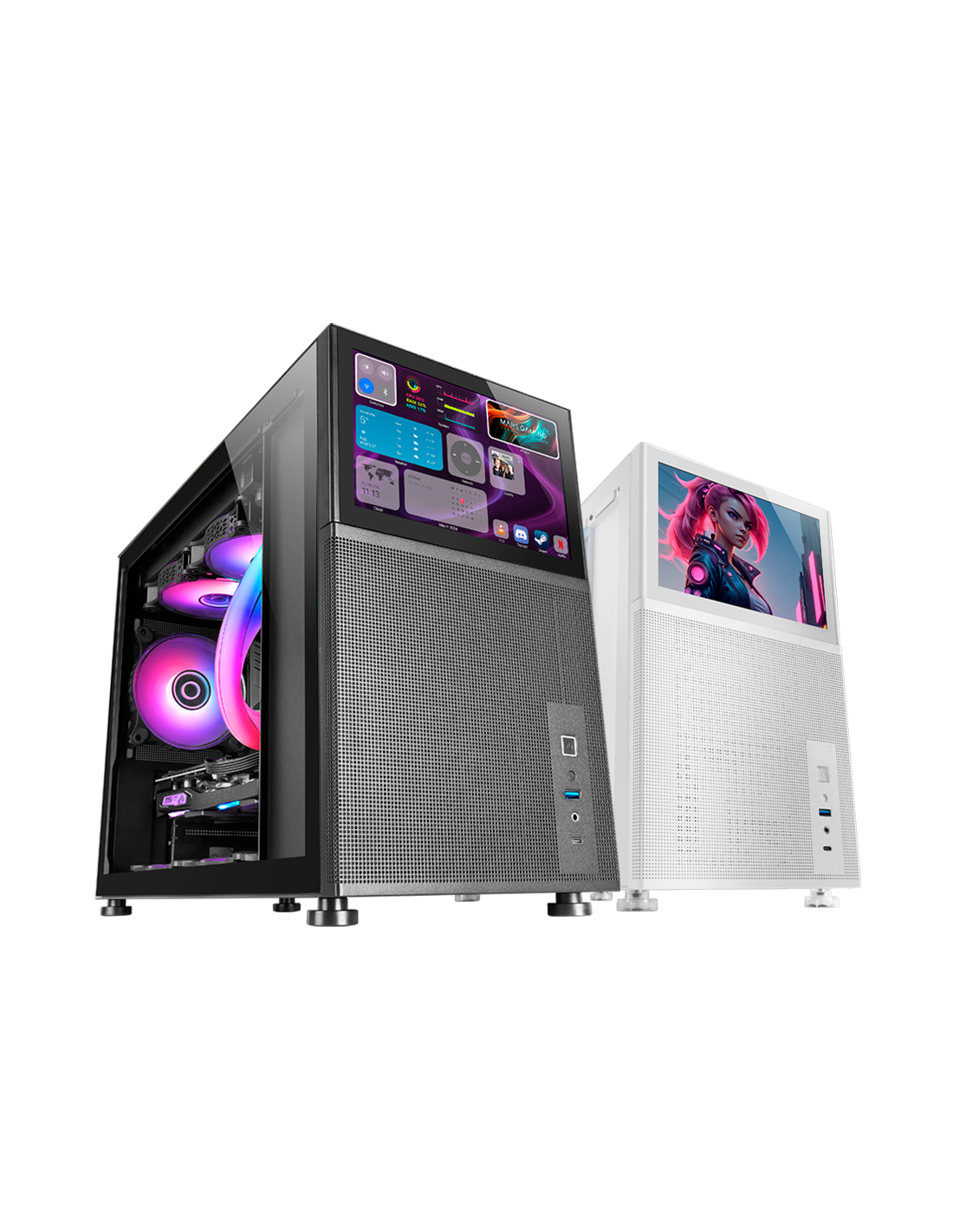 Le boîtier d'ordinateur MC-LCD élève le gaming et la productivité à un autre niveau, combinant un design compact Micro-ATX sophistiqué avec une construction robuste en acier et un design Mesh qui assure un flux d'air optimal. Son écran LCD IPS de 8 pouces et haute résolution ouvre un monde de possibilités pour la personnalisation et le multitâche. Équipé pour accueillir des systèmes de refroidissement liquide avancés et des cartes graphiques de dernière génération, ce boîtier ne lésine pas sur la connectivité avec des ports USB 3.0, Audio HD et USB-C. De plus, il se distingue par son large espace de stockage et ses options d'expansion, en faisant un choix parfait en termes de capacité et de fonctionnalité.