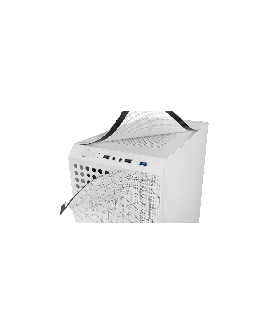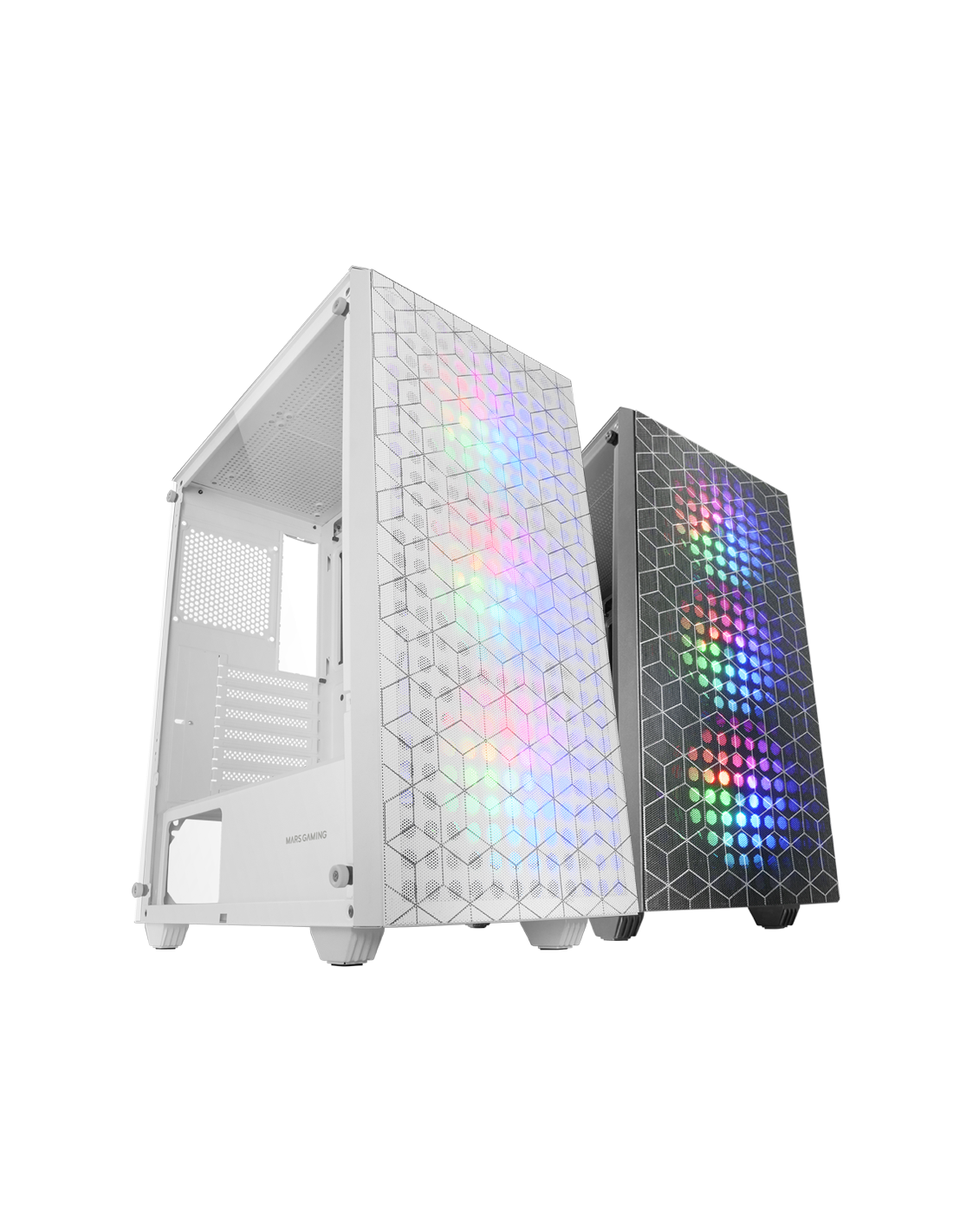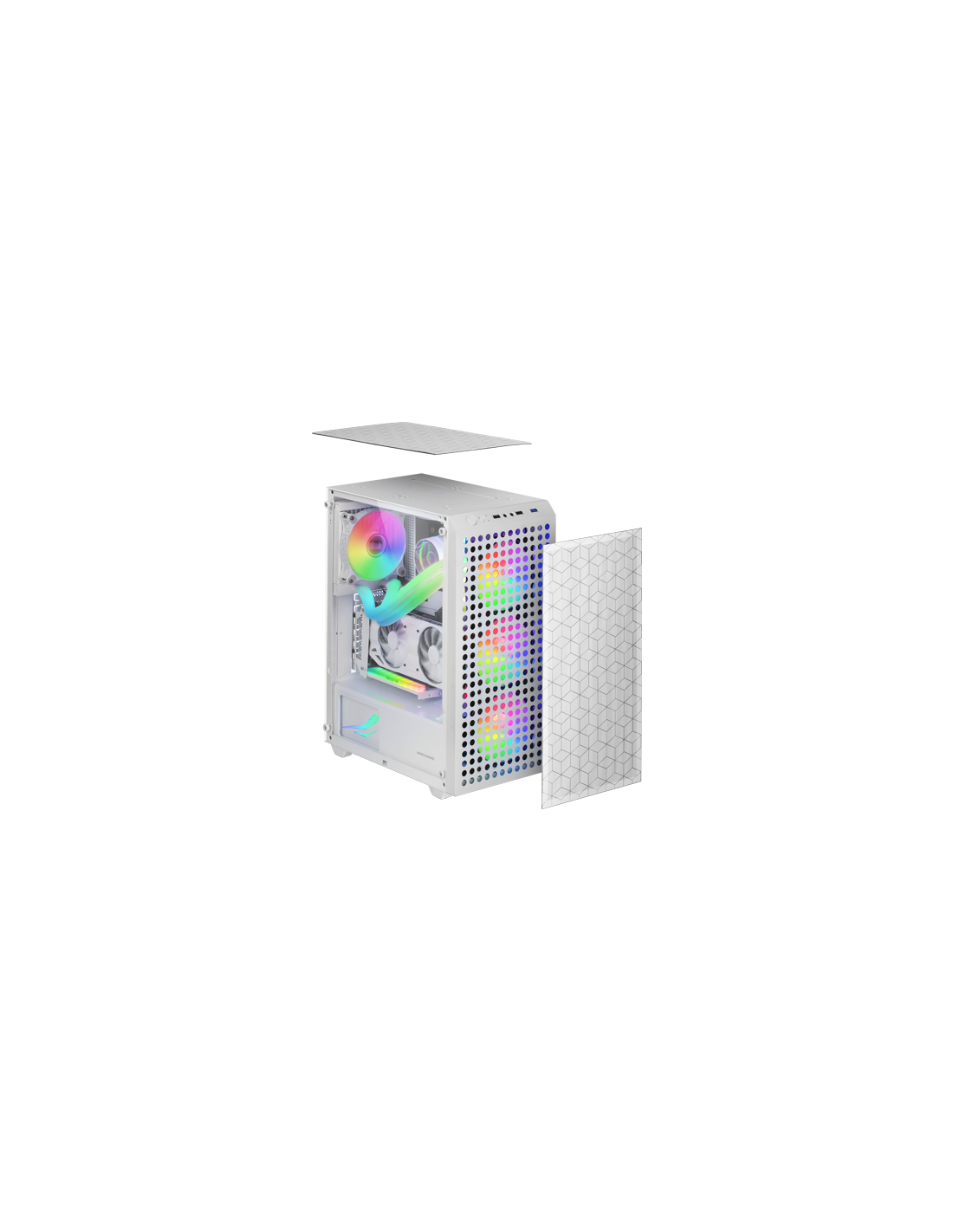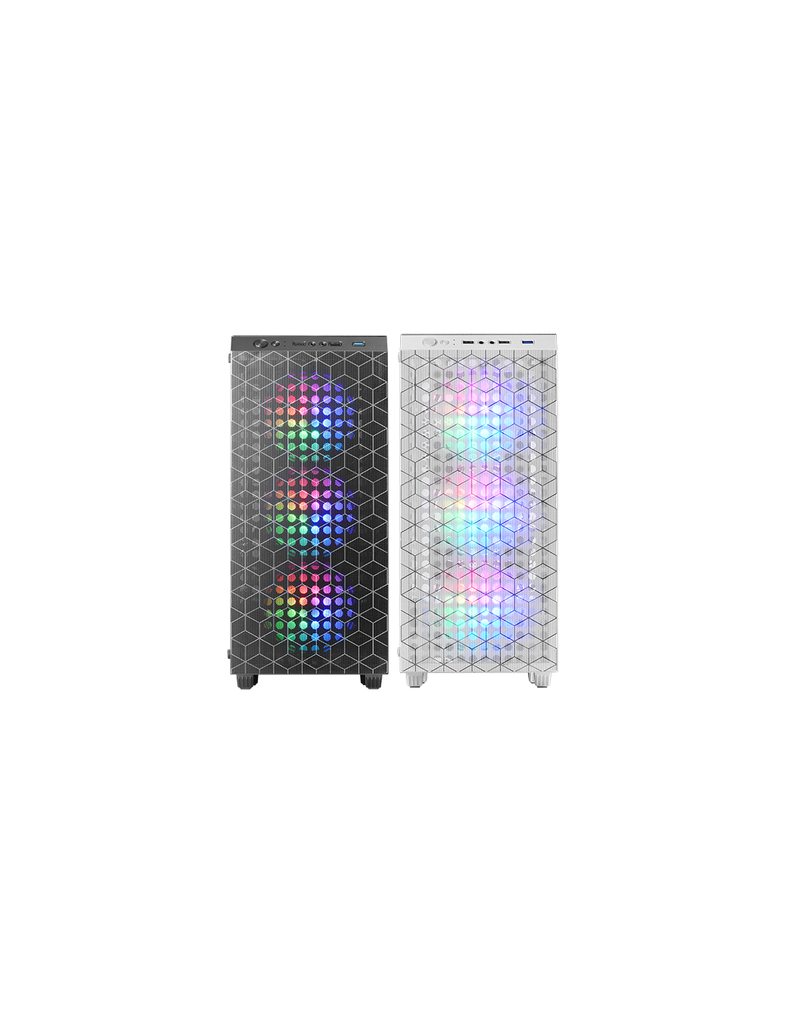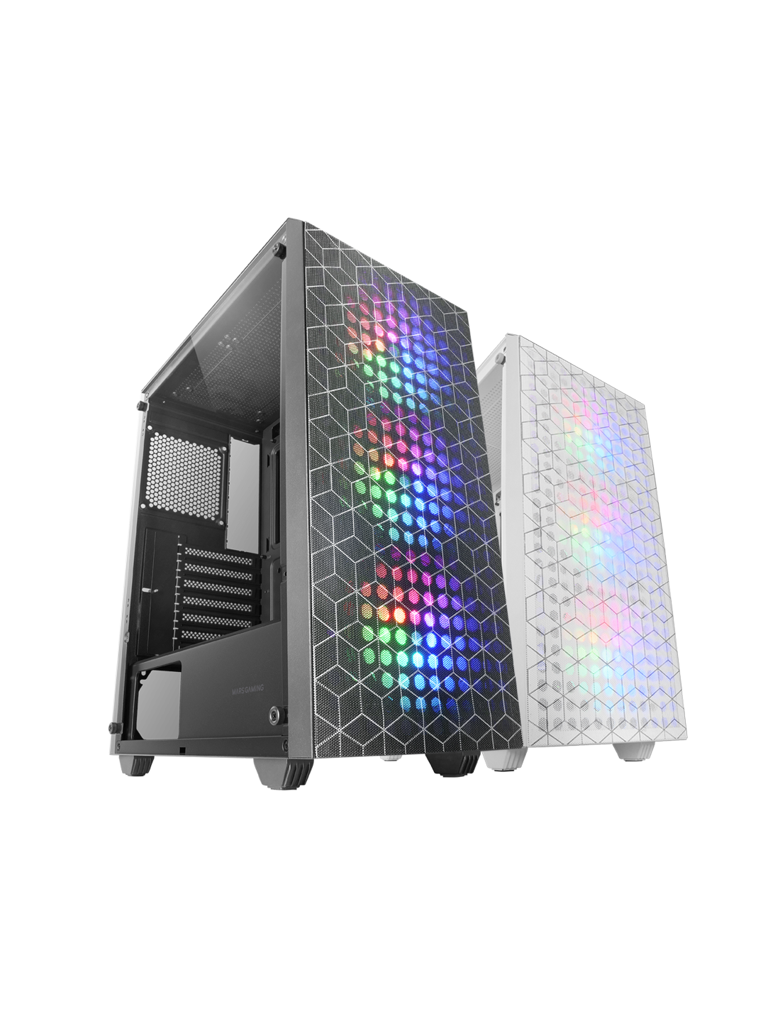 La boîte MC-MAG est une fusion parfaite de design et de fonctionnalité avancée. Elle se distingue par son design unique avec une double grille magnétique de design géométrique qui offre un refroidissement et un entretien exceptionnels et son panneau latéral en verre trempé qui non seulement met en valeur les composants internes, mais ajoute également une touche de sophistication à toute configuration. Système de refroidissement efficace intégrant 3 ventilateurs Fixed RGB de 120mm à l'avant et support pour refroidissement liquide jusqu'à 360mm. Compatible avec les cartes mères ATX, elle est idéale pour les montages avancés et exigeants.