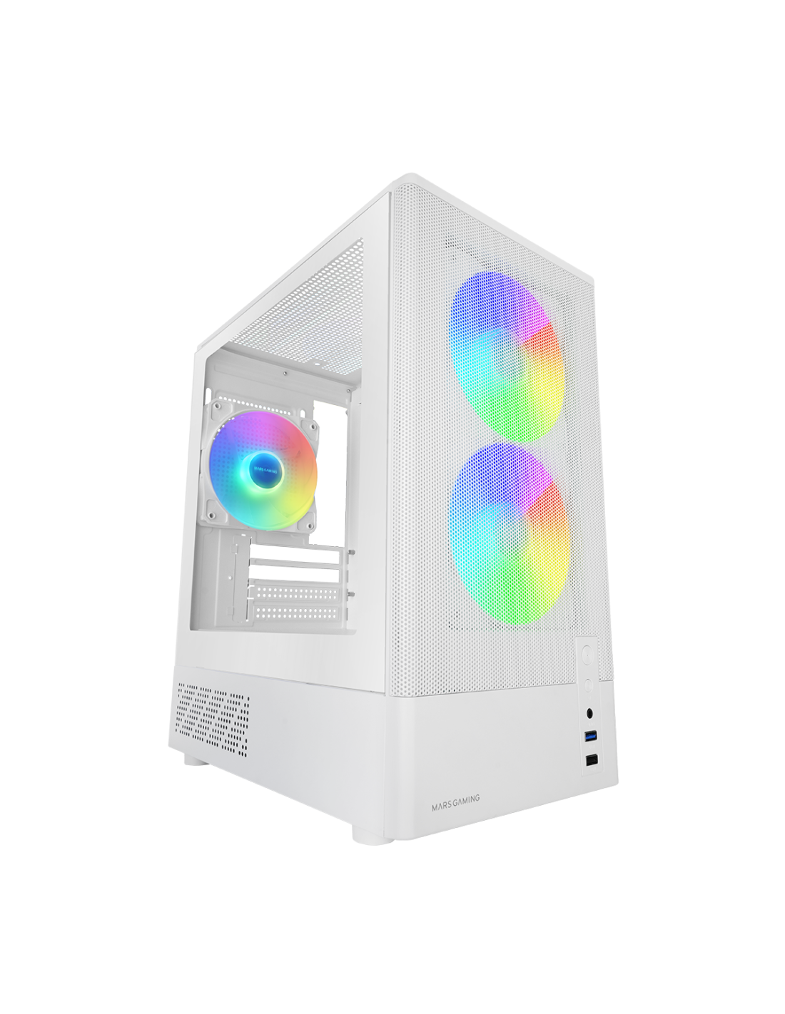 Le MC ONYX est un boîtier microATX haute performance conçu pour offrir un flux d'air extrême dans un format compact. Sa façade en mailles métalliques maximise la circulation de l'air, tandis que la fenêtre latérale en verre trempé permet d'afficher clairement votre matériel. Il comprend 3 ventilateurs ARGB de 120 mm avec roulements FDB (2 à l'avant + 1 à l'arrière) et un support pour un refroidissement liquide jusqu'à 240 mm sur le dessus, ainsi que de l'espace pour 7 ventilateurs de 120 mm. Tout cela avec un bloc d'alimentation séparé, un refroidisseur de GPU jusqu'à 292 mm et un refroidisseur de CPU jusqu'à 165 mm.
