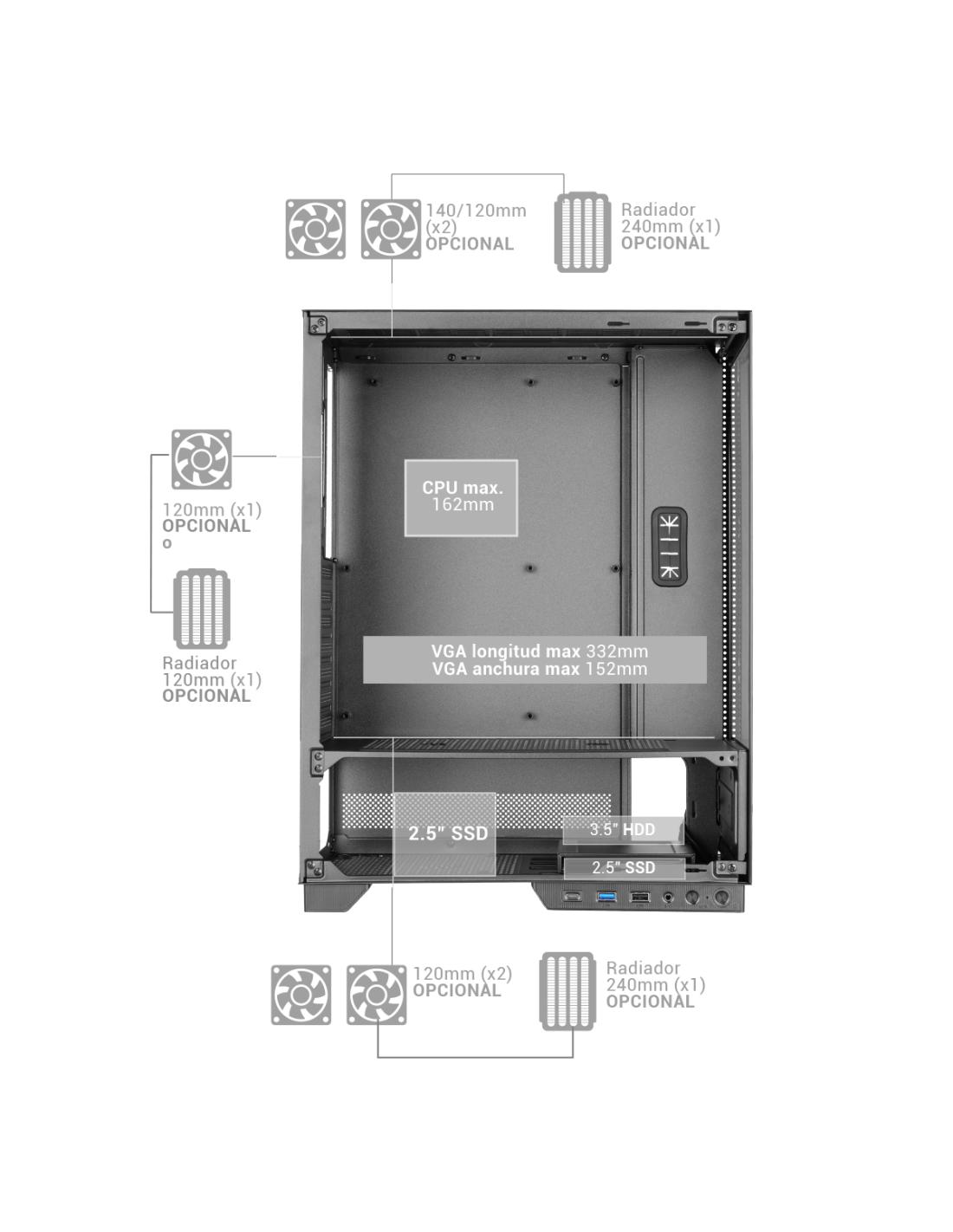 Read more Lire moins- Affichage LCD en façade des températures CPU/GPU et du nombre de tours/minute du ventilateur en temps réel