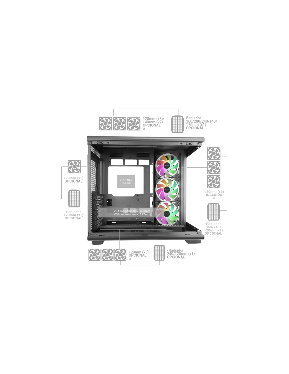 - 3x ventilateurs internes 120mm ARGB à flux inversé