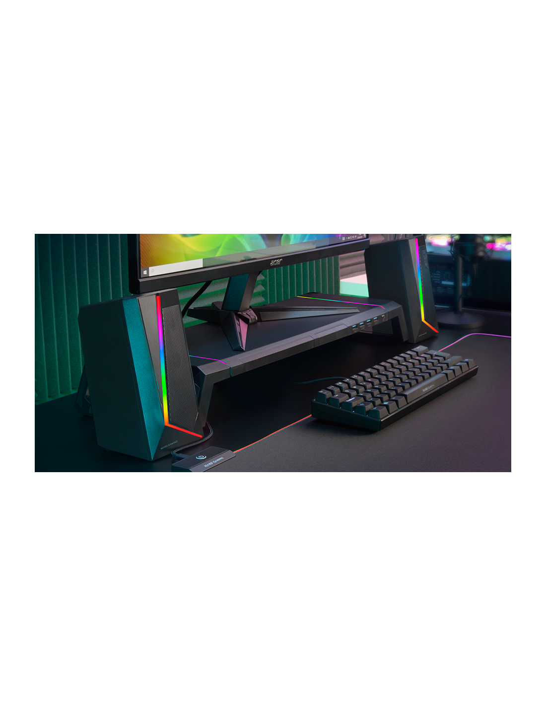 Sorprendenti altoparlanti con 20W di potenza, avanzato processore audio DSP con spazialità multilivello e bassi migliorati, spettacolare sistema di illuminazione RGB dinamico e connettività totale jack + Bluetooth 5.0.