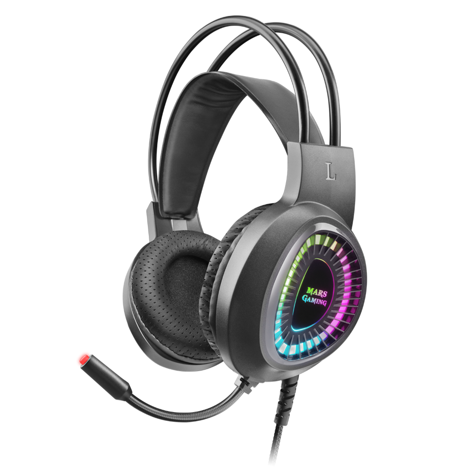 Illuminazione Rainbow RGB Flow. Suono con bassi potenti e ottimizzazione spaziale. Comfort estremo con un peso ultra-leggero di 210g. Fascia di sospensione auto-regolabile. Tecnologia di traspirazione AIR. Microfono flessibile con filtro anti-rumore. Le cuffie da gioco più competitive.