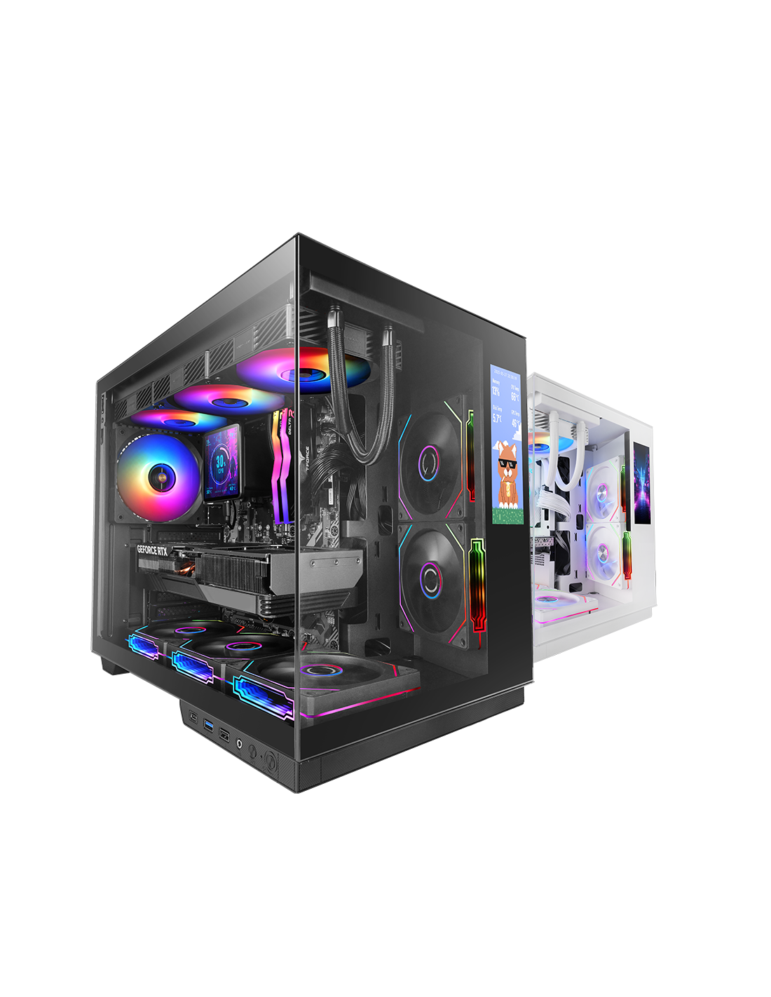 Scopri la MC-MIRAGE, un case gaming ATX che porta la personalizzazione e le prestazioni a un nuovo livello grazie al suo esclusivo schermo integrato LCD IPS da 7,2” e al suo elegante design panoramico in vetro temperato. Con una struttura a doppia camera, compatibilità avanzata e spazio per l'hardware di ultima generazione, è realizzato per appassionati, gamers e creatori che cercano un setup unico, sofisticato e pieno di innovazione.