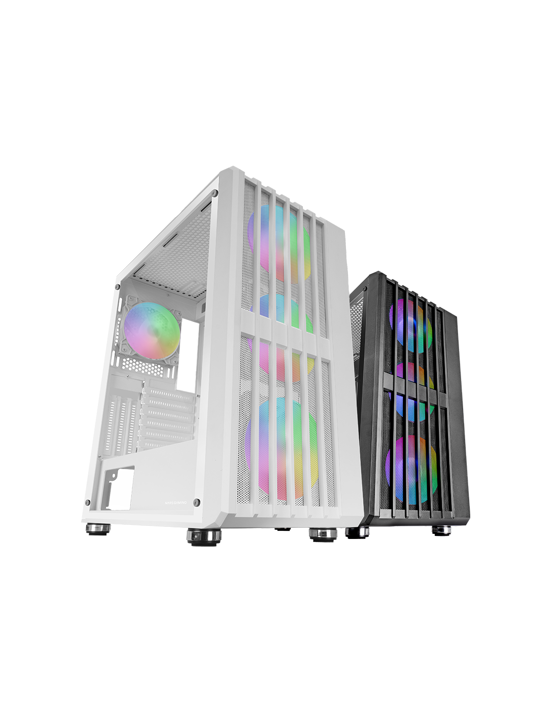 La scatola MC-VAULT combina stile, prestazioni e personalizzazione in un design impressionante. Con un frontale Mesh che ottimizza il flusso d'aria, 4 ventole ARGB da 120 mm e una finestra laterale in vetro temperato, questa torre si distingue sia per la sua estetica sia per la sua funzionalità. Offre ampio spazio interno per schede grafiche fino a 358 mm, compatibilità con sistemi di raffreddamento a liquido fino a 360 mm e montaggio verticale della GPU, garantendo la massima flessibilità per configurazioni ad alte prestazioni e una gestione efficiente dello spazio.