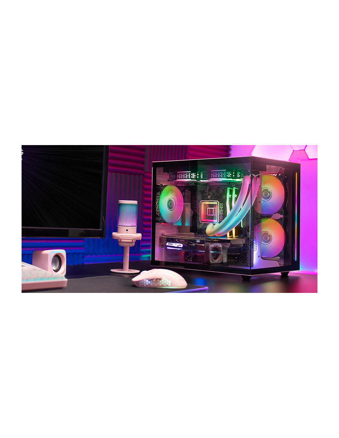 Design esclusivo e spazio ottimizzato. Le sue finestre in vetro temperato continuo permettono di esporre i tuoi componenti, mentre la sua innovativa struttura modulare a doppia camera migliora la refrigerazione e lo spazio. Con capacità di supportare fino a 7 ventole e schede grafiche di alta gamma, offre opportunità illimitate di personalizzazione, inclusa il supporto per la refrigerazione liquida fino a 240mm. La combinazione perfetta tra personalizzazione e prestazioni.