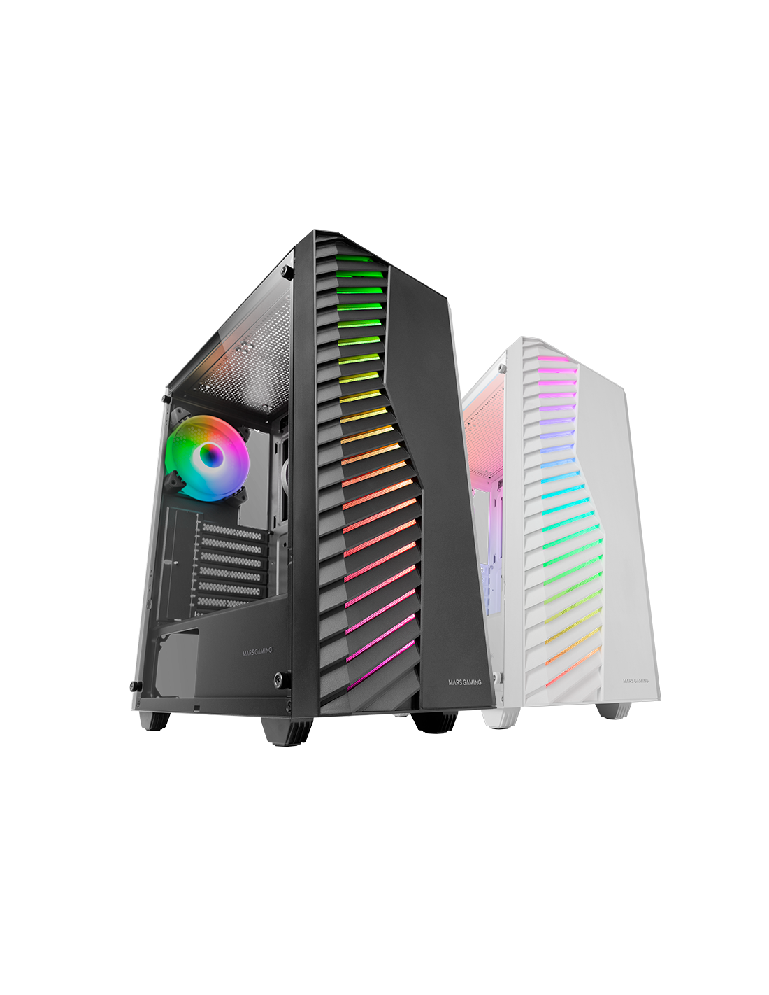 La MC-VOLT è il case gaming definitivo per coloro che cercano potenza, stile e personalizzazione totale. Con un impressionante sistema di illuminazione che include un ventilatore ARGB preinstallato e una griglia frontale ARGB, un finestrino laterale in vetro temperato, compatibilità con GPU di grandi dimensioni e una gestione dei cavi ottimizzata, questo mid-tower combina design e performance senza compromessi. Inoltre, la sua connettività avanzata e l'ampio storage rendono la MC-VOLT la scelta ideale per portare il tuo setup al livello successivo.