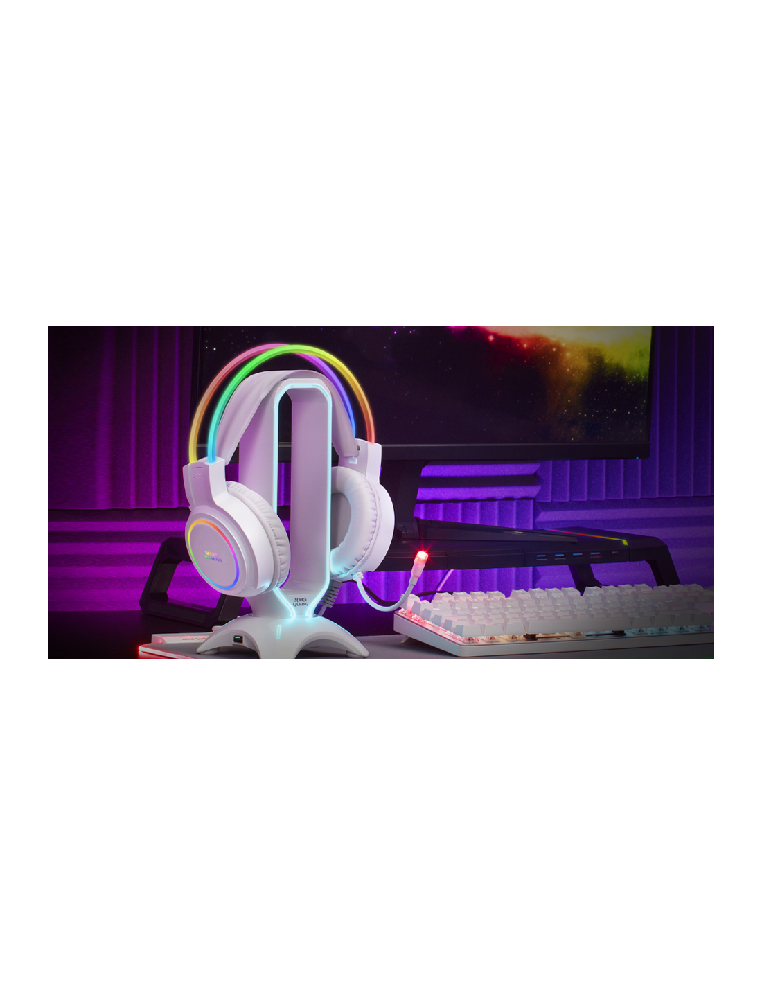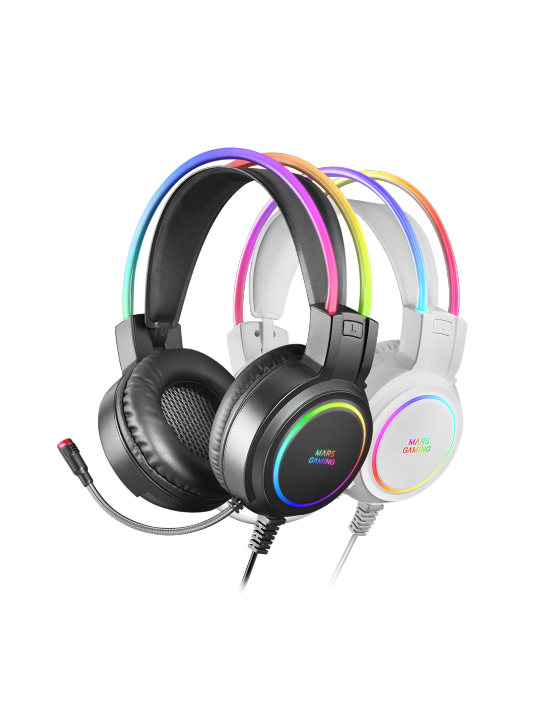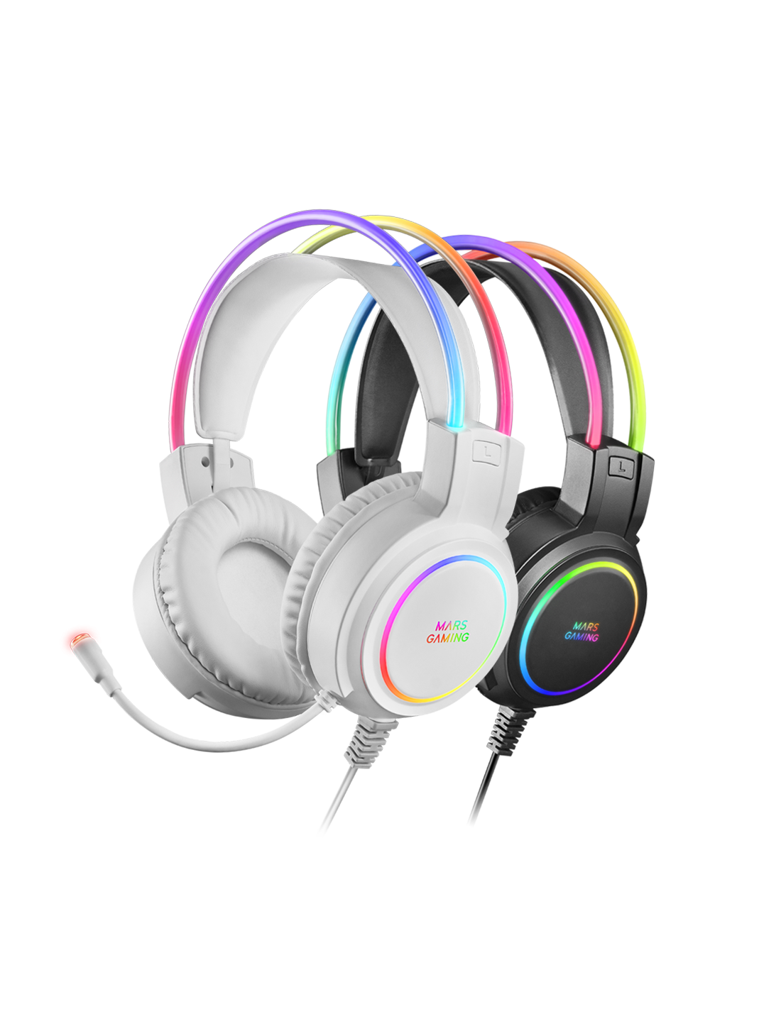Iluminação 360º CHROMA na faixa de cabeça e laterais, som Ultra-BASS 3D espacial e microfone com cancelamento de ruído. Além disso, são ultraleves, com cancelamento de ruído passivo e compatibilidade total multiplataforma.