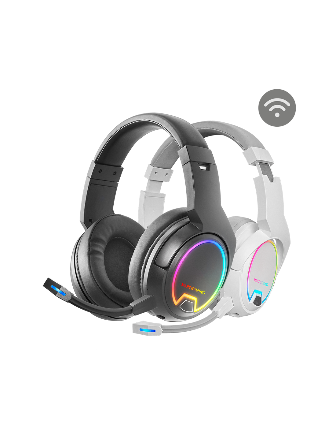 Auscultadores sem fios com iluminação ARGB flow, até 40 horas de bateria, microfone removível com cancelamento de ruído digital ENC, função VOICE MONITOR e compatibilidade universal.