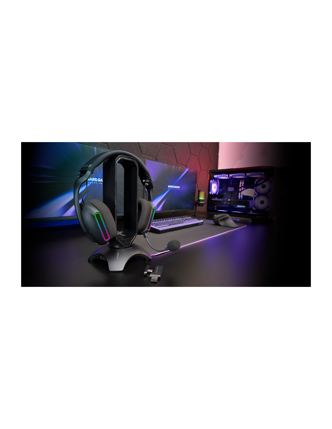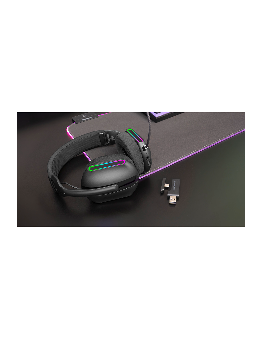 Mergulhe no som surround 7.1 com tecnologia 3D dos fones de ouvido para jogos MHW-PRO e desfrute de uma experiência imersiva e detalhada. Com sua iluminação ARGB Flow, design ultraleve de 220 gramas, almofadas respiráveis AIR e banda ajustável, oferecem estilo e conforto durante longas horas de uso. Desfrute de conectividade tri-mode com conexão 2.4GHz, Bluetooth 5.3 e Jack 3.5mm, com uma autonomia de até 40 horas. Com sistema de microfone duplo que garante áudio nítido em qualquer situação, receptor duplo-porta USB-C/USB-A e controles integrados garantem máxima funcionalidade e versatilidade.